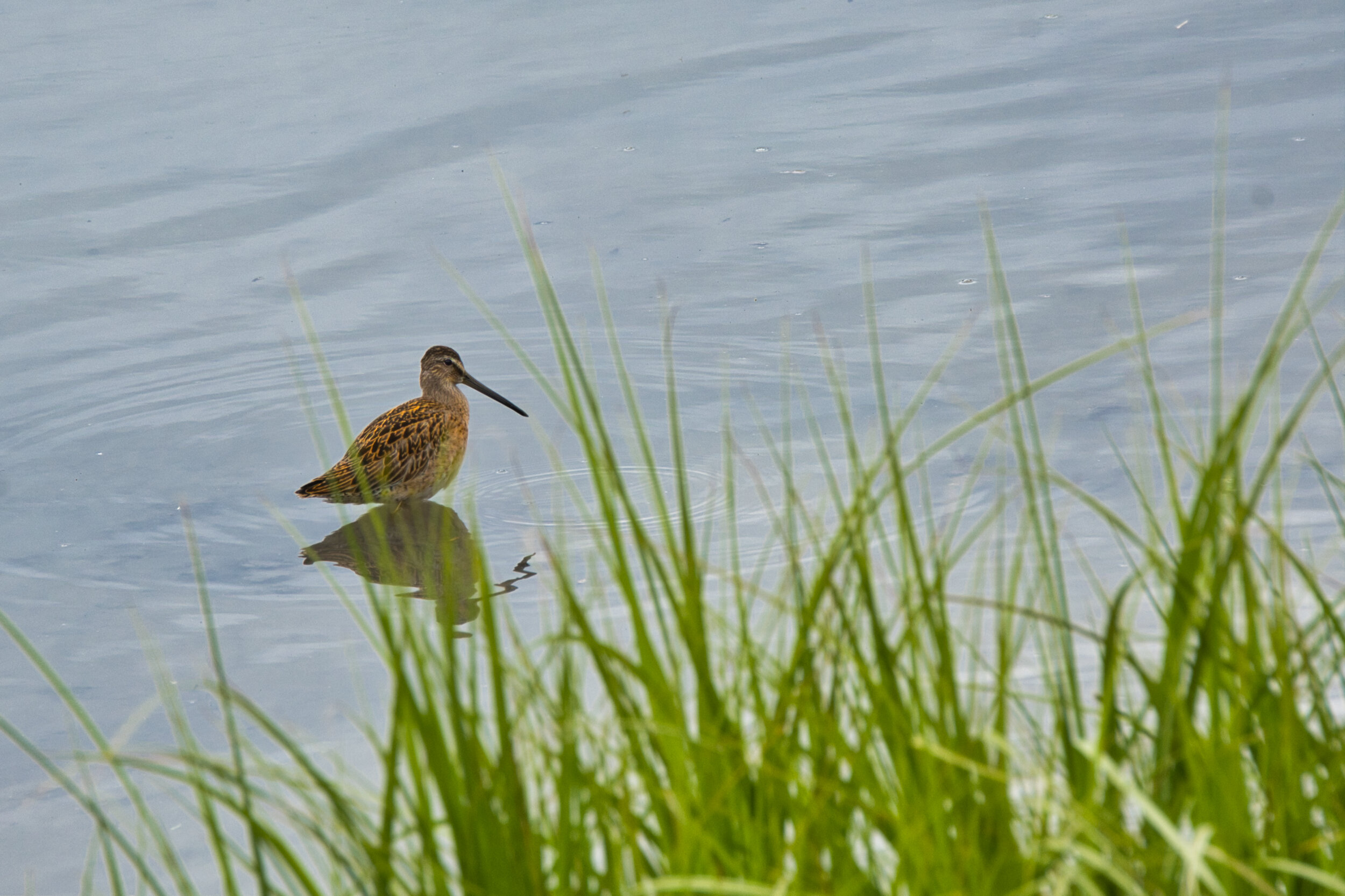 But only in relation to the Long-billed Dowitcher. This Pacific variation is still in breeding plumage. They have more orange tint and spots on the breast unlike the Atlantic or the Prairie variants that are grayer for the former and more clear orange for the latter. In the reeds in Potter’s Marsh south of Anchorage.