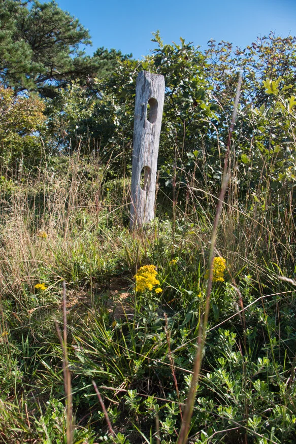 Almost hidden in the foliage is this old fence post along a trail in the Cape Cod National Seashore. When I see something like this I first imagine what it must have been like to create a farm or ranch or homestead in the area and to wonder if those who did so appreciated the inherent beauty of the place or just the struggle of eking out a living is an often harsh environment? They are good reminders that we are stewards of the land not owners and that the land will usually restore itself over time.