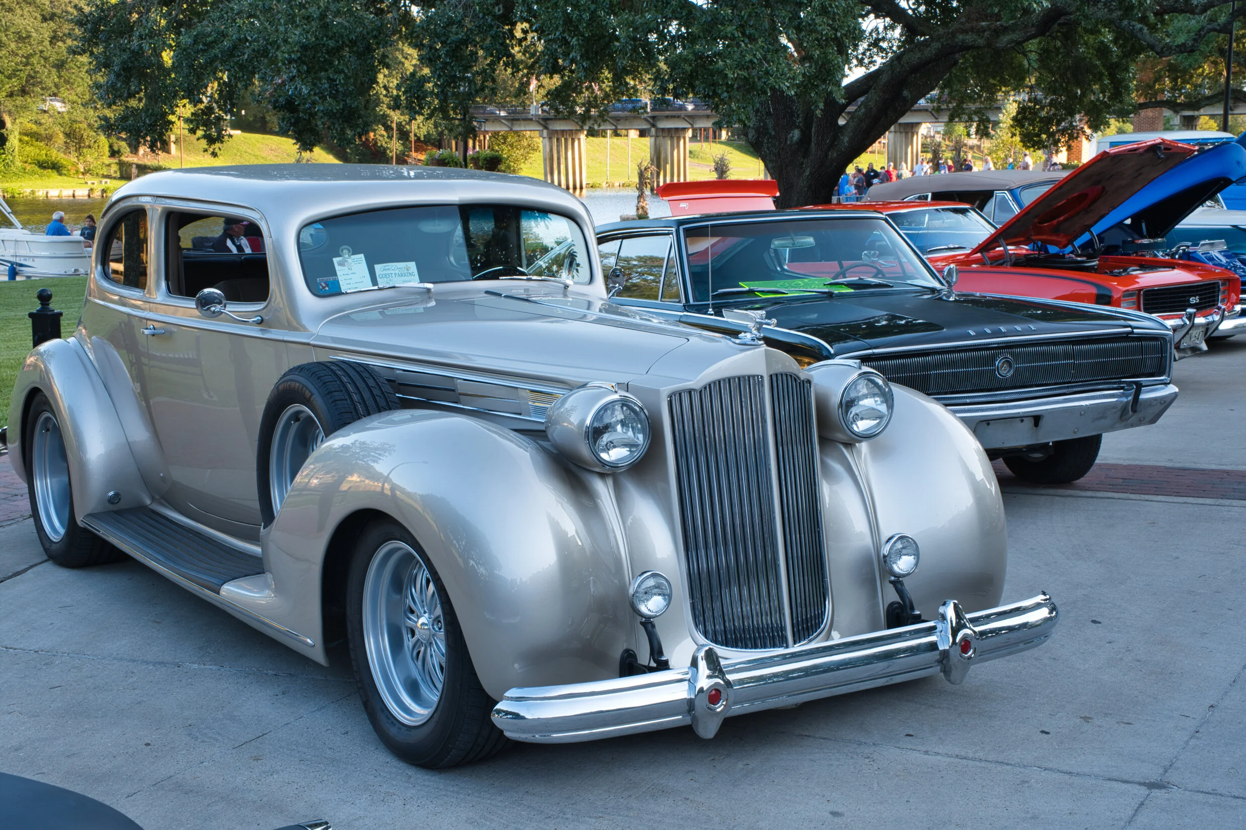 There were hundreds of these neat cars that are bright colors and make cool noises. They remind me a bit of the bears in my home area of Maine when they roar. Of course, there are not as fierce as a moose but they sound a bit more like these angry cars. I could really use one of these hot rods - if they ever allow moose to drive, cause lots of them don’t have a roof and my magnificent antlers can be fully admired as I cruise (I learned a new word!) down the street. Plus when you get one of those you get to stand around and talk and eat, two of my most outstanding qualities.