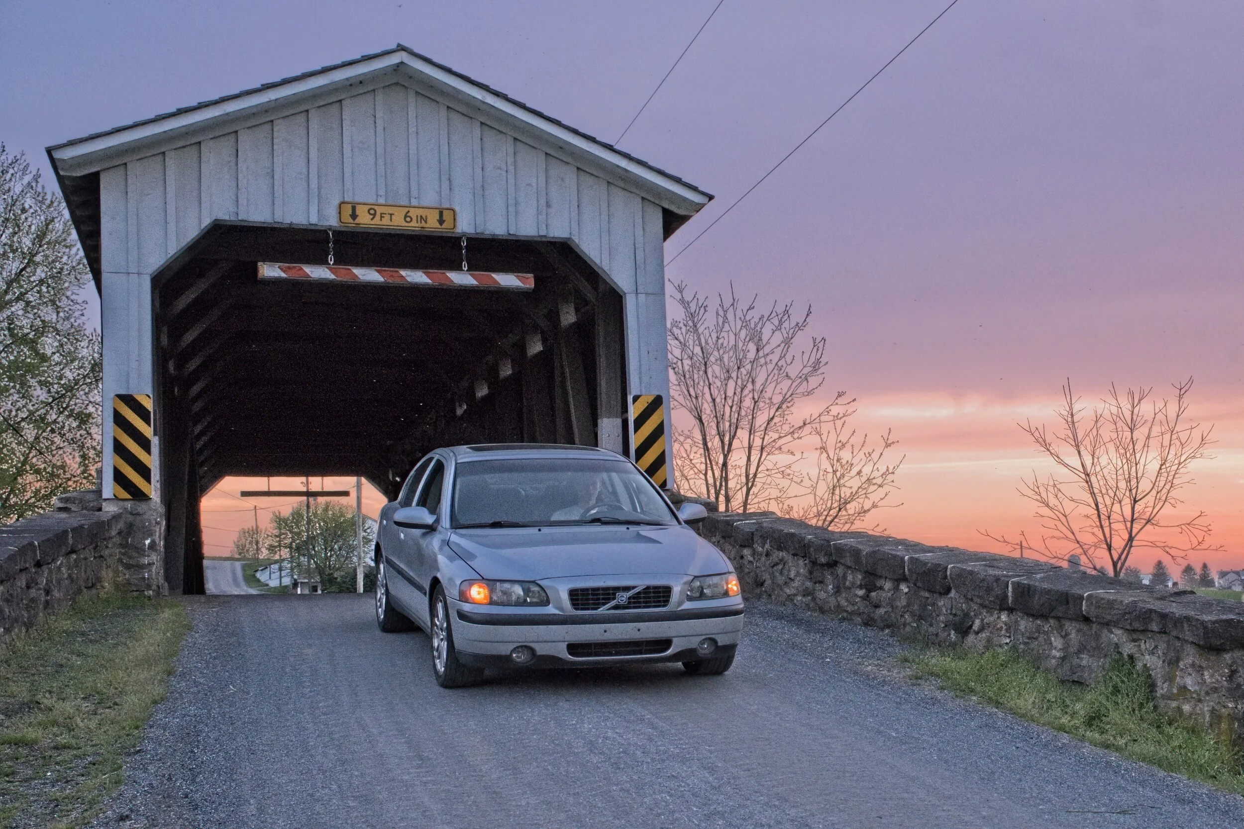 Just ran across the shot of Kellen and the Volvo on a covered bridge northeast of Lancaster, PA in the heart of the Amish country. We were hoping to find one where we could also get a bit of sunset. Success.
