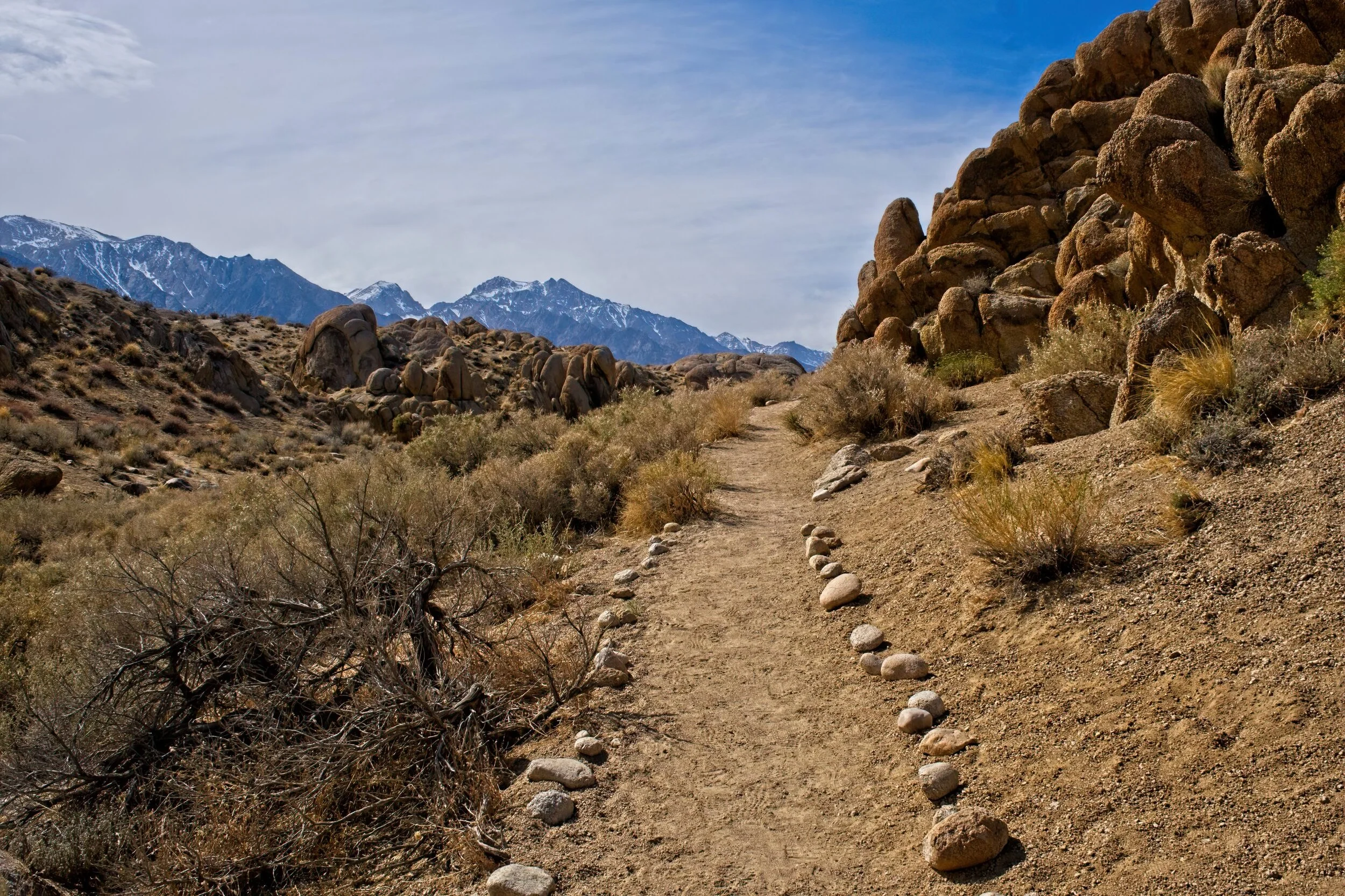 Not where is this taken, you may have guessed if you have been viewing pages recently that this photo is from the Alabama Hills near Lone Pine, California. Rather the question is where does this path lead and you cannot know that for sure until you crest the ridge and even then the path will often still be obscured. Much like our lives. We may have an idea where we are going or a plan but how far down the path can we really know? Twists and unexpected turns, career moves, accidents, illness, opportunities and challenges mean that life is a constant series of adjustments to changes. But you can trust in One who does know. It requires faith & grace and obedience to actually go. In my opinion the secret is momentum not simply the destination.