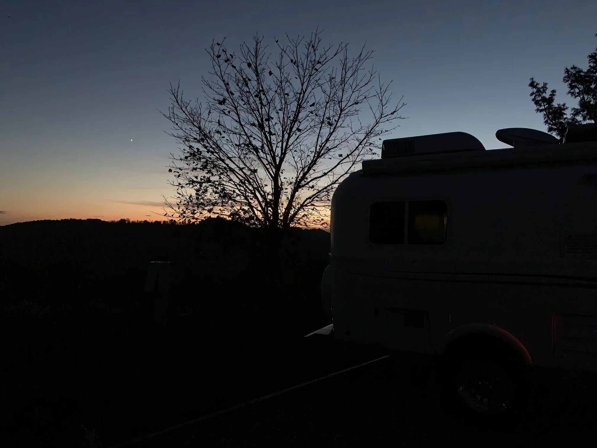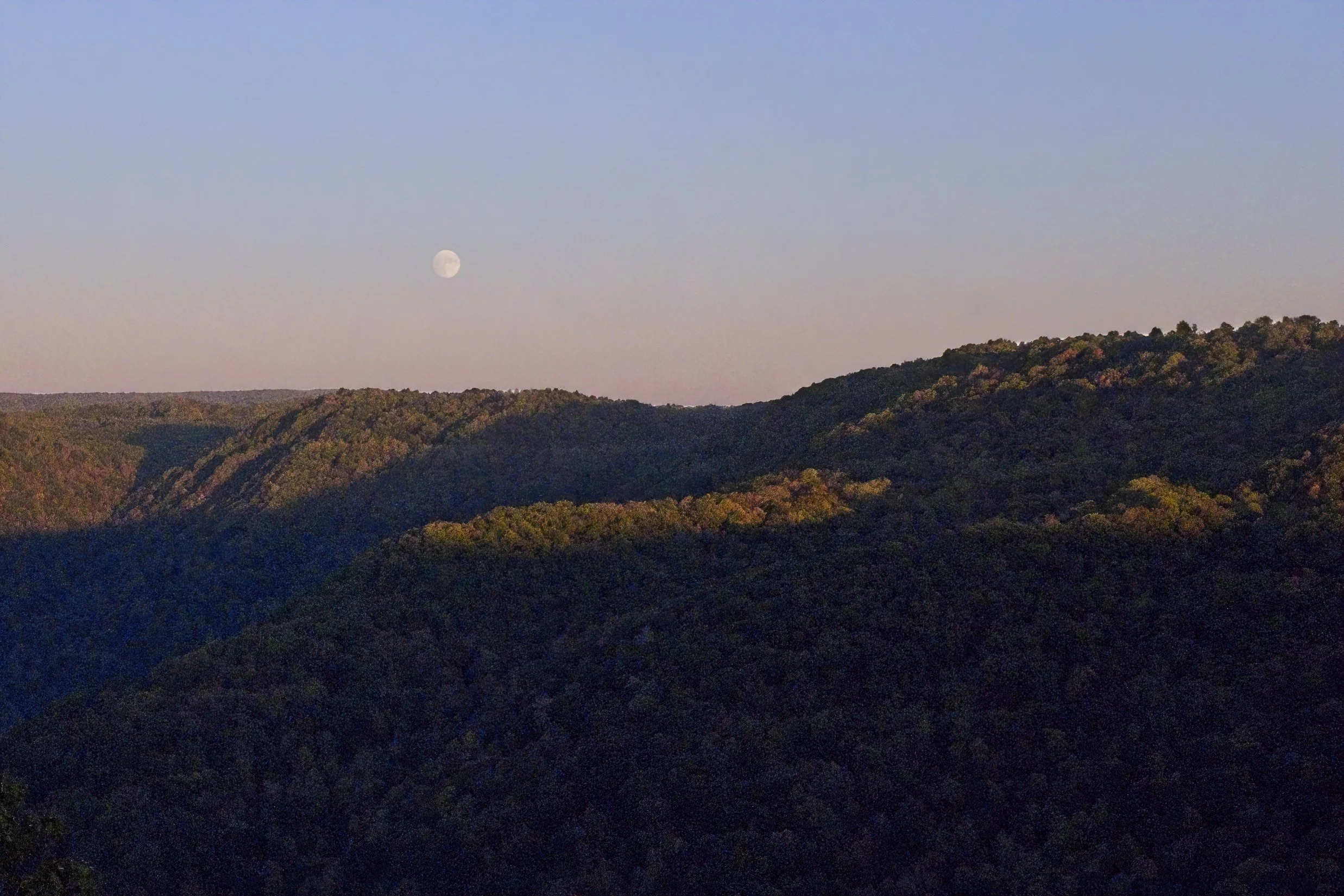 Before leaving Salt Fork State Park in Ohio we took a short hike up to Morgan’s Knob. Not much of a view at the small meadow but a very pretty trail in pine and then hardwood forest. And the warm sun and lack of a breeze were welcome in the early morning cool. The drive to New River Gorge National Park and Preserve was uneventful. Just like you prefer travel. We went first to the Sandstone Visitor Center where the ranger was just incredibly helpful - in contrast to the information on the web site which is hard to discover what is where and if it is open. She gave us detailed instructions to several drives and hikes with maps and even showed some personal photos of the destinations. She told us of a free campground a mile away which was not in any info we had and the change of plans to stay here was an easy choice. We had time before dark to go to one spot, the Grandview area, and it was, particularly Turkey Spur Overlook which is on top of a great rock reached by 145 steps. We watched the moon barely visible over the mountains and the valley below. The campground is beautiful, quiet, large spaces and right beside the New River. No services but a trade-off I would take anytime for the serene night.