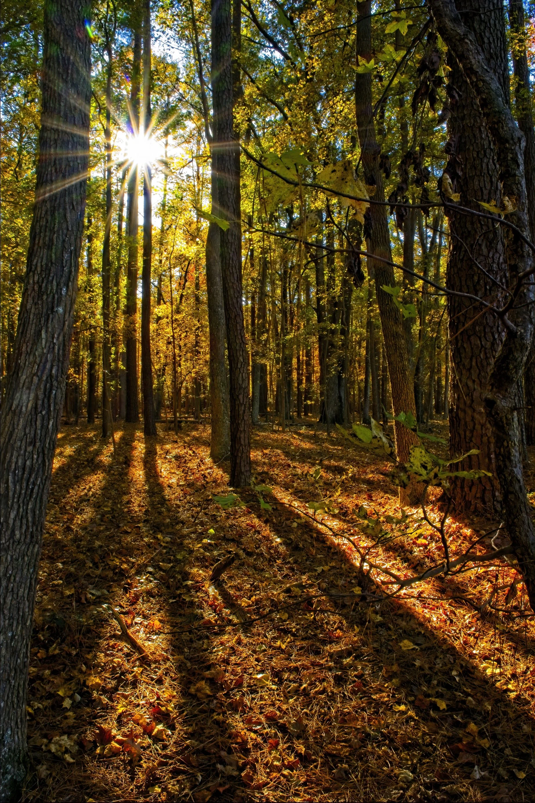 This is a bit of forest with the sun going down and igniting a carpet of orange. This was along a battlefield road in Yorktown National Balttlefield.