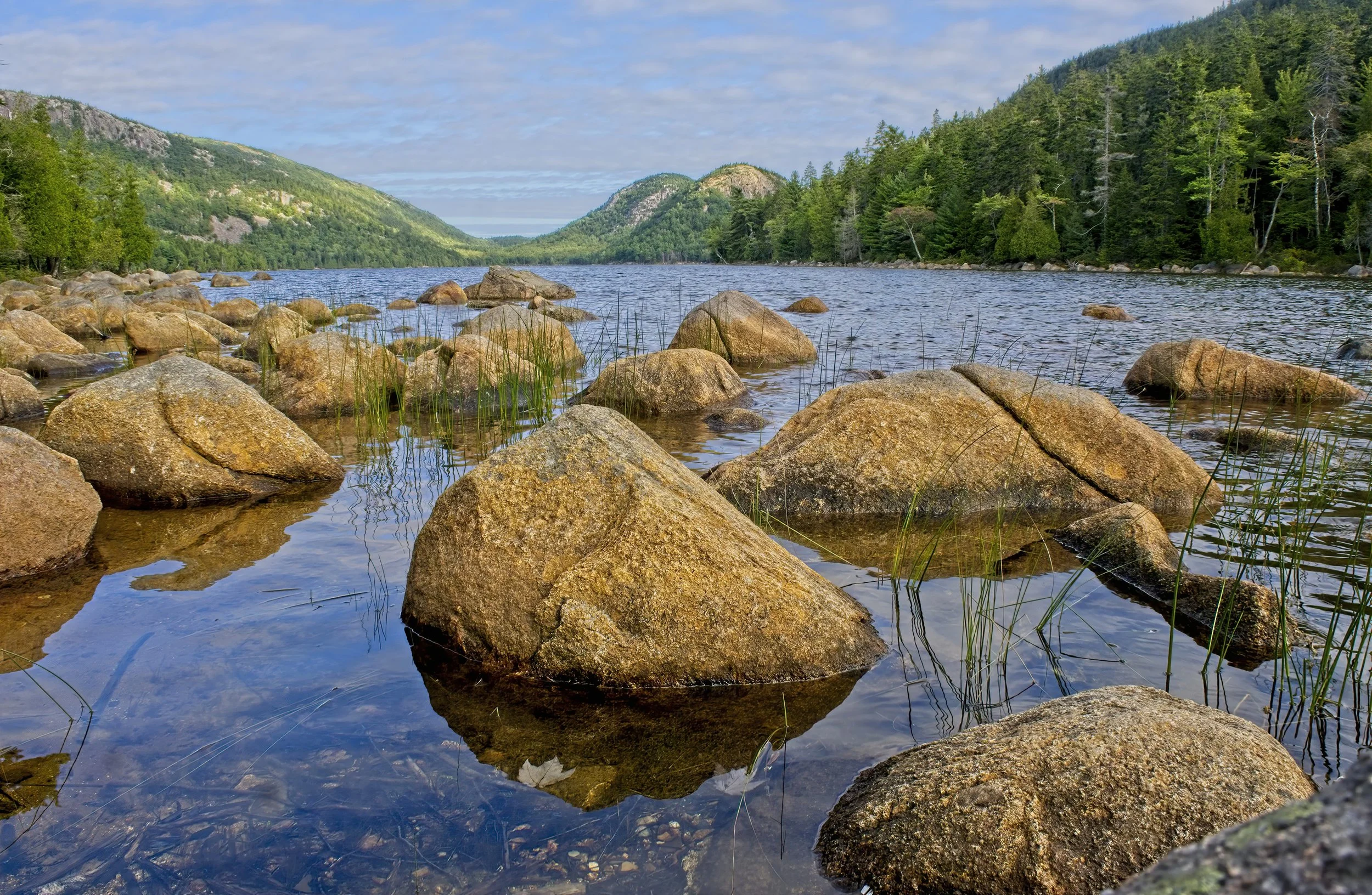 This is a shot at Jordan Pond but not from the usual place at the end of the lake but at an inlet about 1/2 mile east of the Jordan Pond House. It gives a different perspective on the two Bubbles, South and North.