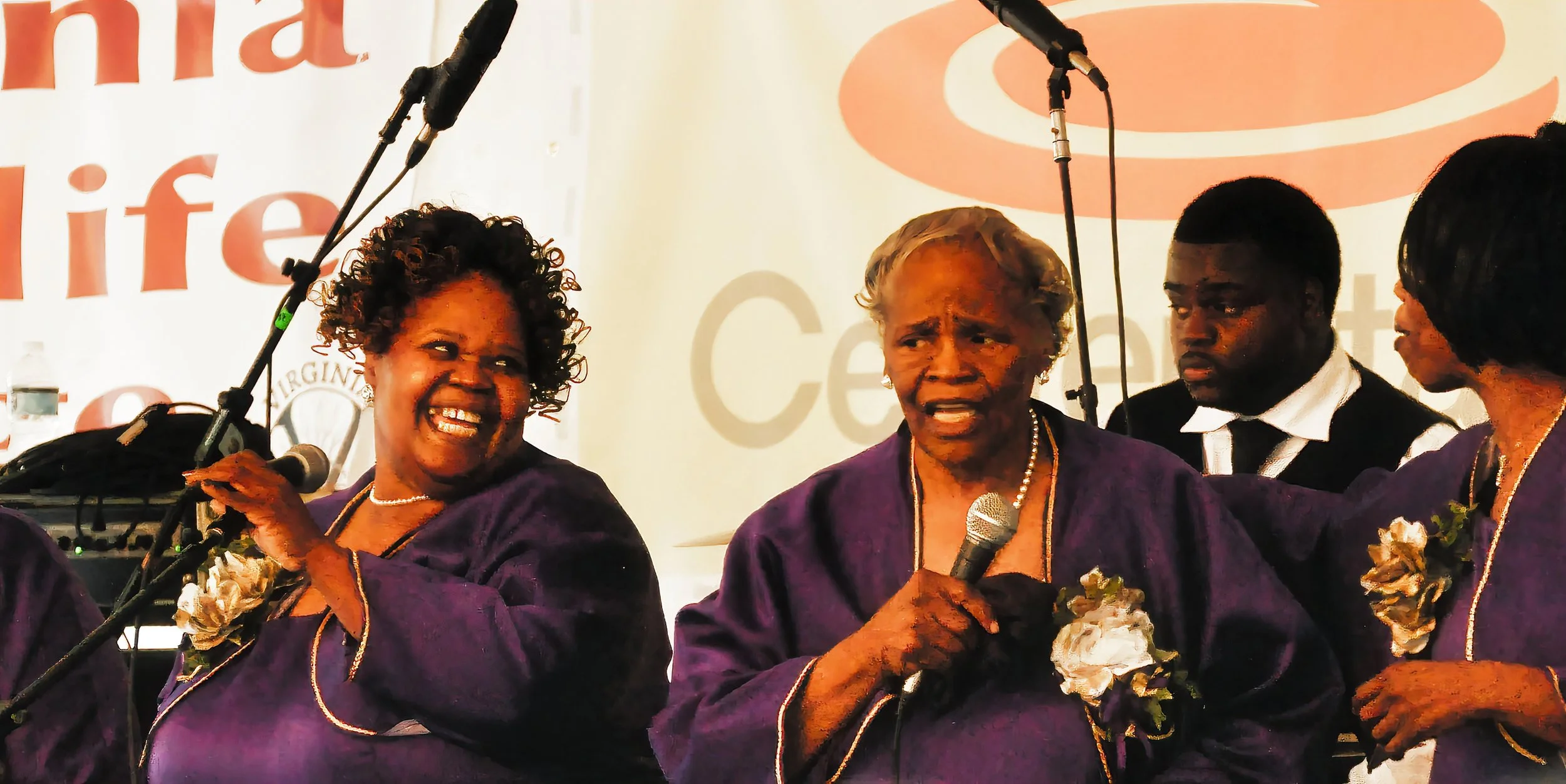 I have only had a couple of hours to work on the pictures but already great memories and an occasional decent photograph. But this one brought back a great night. We were at the Virginia Folk Music Festival in Richmond in 2011. There are five stages and things going on all of them all the time so you have to choose. We did not choose this one but we were at this stage for the previous show and did not need to leave for our chosen one for 1/2 hour so we thought we would watch Maggie and the Igramettes for a few minutes. We had little expectations. We never left. What an amazing group and a more remarkable and inspirational story. Maggie Ingram is in the center in the photo a son and two daughters flank her. She could not walk well but she danced and sang and simply captivated the audience. Who cheered and applauded and did not want to leave. What an event. Please pause what you are doing and read this article published at her death four years after this shot.
