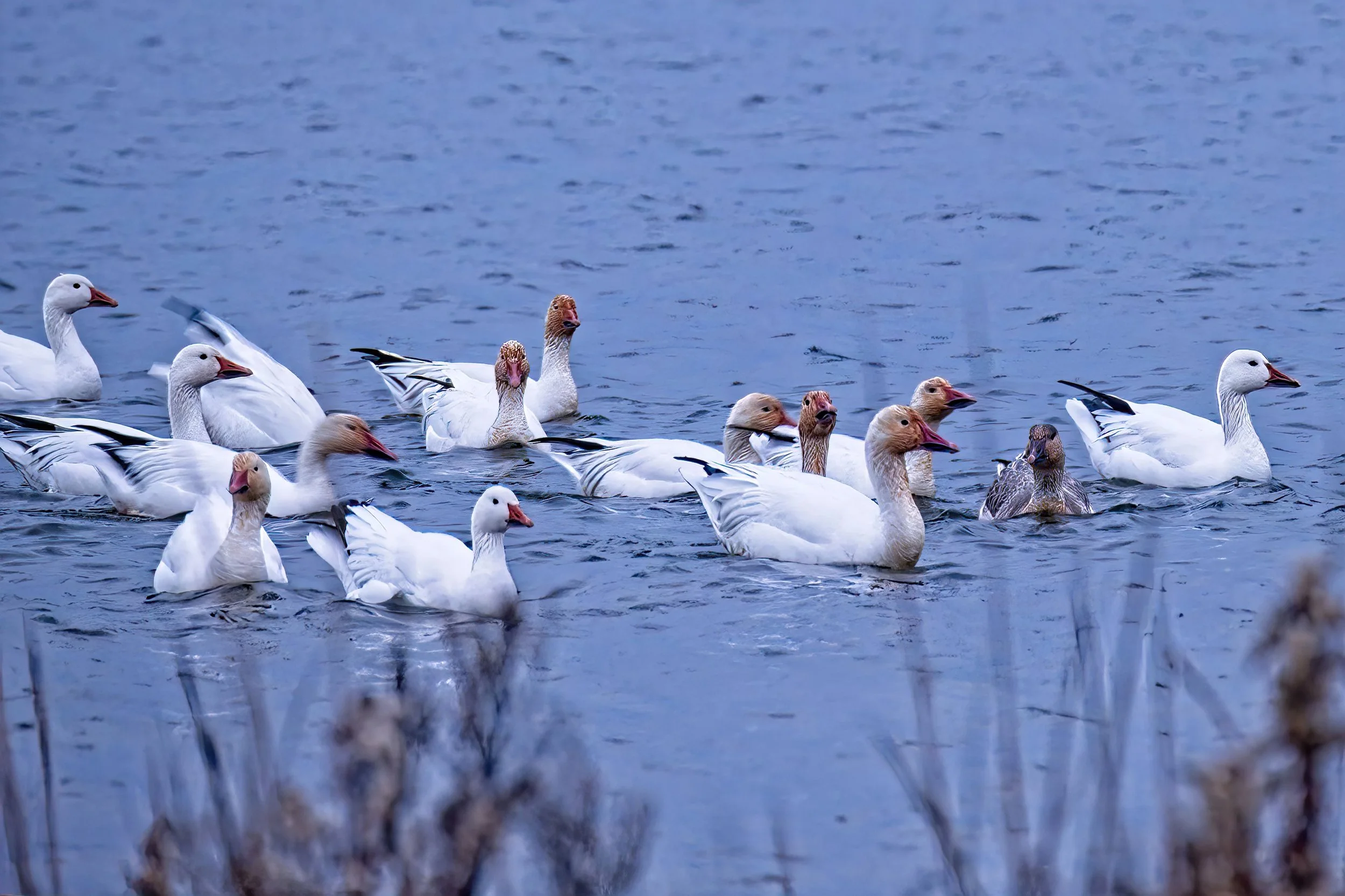 There are male and female geese and what was once classified as a Blue Goose but is now considered a dark version of the Snow Goose.