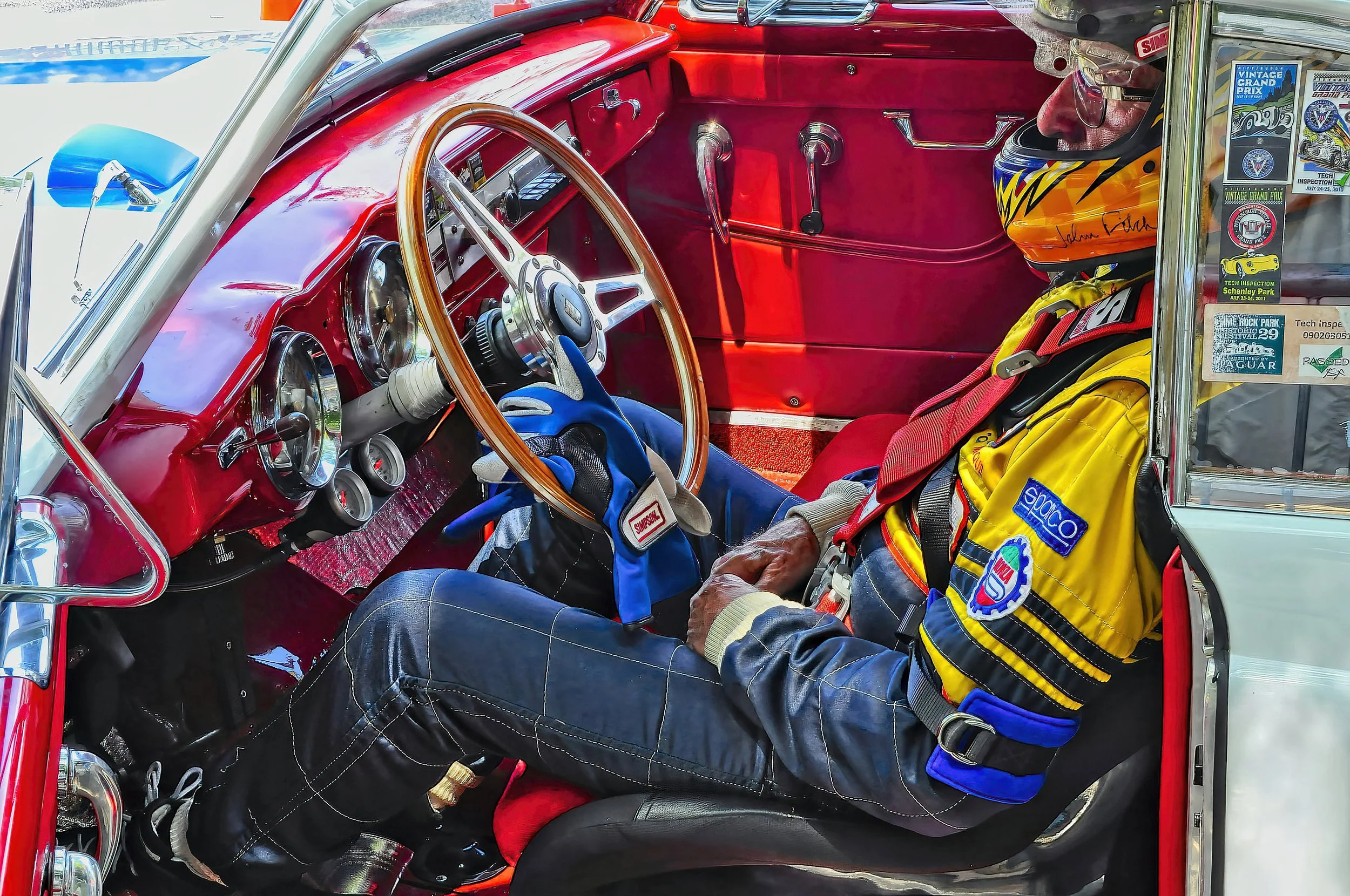 I enjoy vintage car racing. Perhaps because I am a product of the 60’s when many of these cars or at least the marques were at their apex and back then I followed racing intently. Maybe because one of the premier venues is in Pittsburgh where every July they stage a week of events at Schenley Park. One thing is for certain it is a target rich environment if you are a photographer. These shots are from 2012. I took them along the staging area where the drivers wait for their race. The line up here by class and go out as soon as the last race is done and the track is cleared. These are amateurs and most will not push their cars to the limits but occasionally a race will be hotly contested. And accidents do occur so there is a quiet in the waiting. Some are reviewing the track, or thinking about a tricky corner or a recent mechanical issue they hope is resolved. A few get last minute advice or a quick “Be careful out there.” But it is the stillness you see before the frantic pace of a 15 laps feature as they wait their turn for the green flag to fall.
