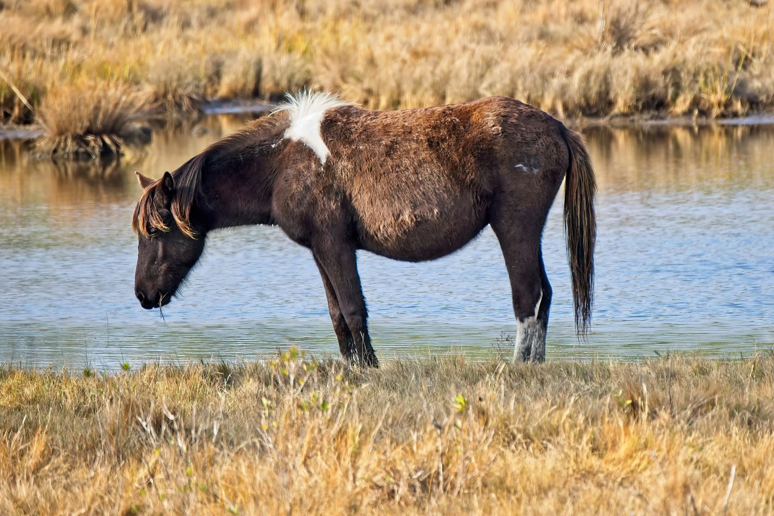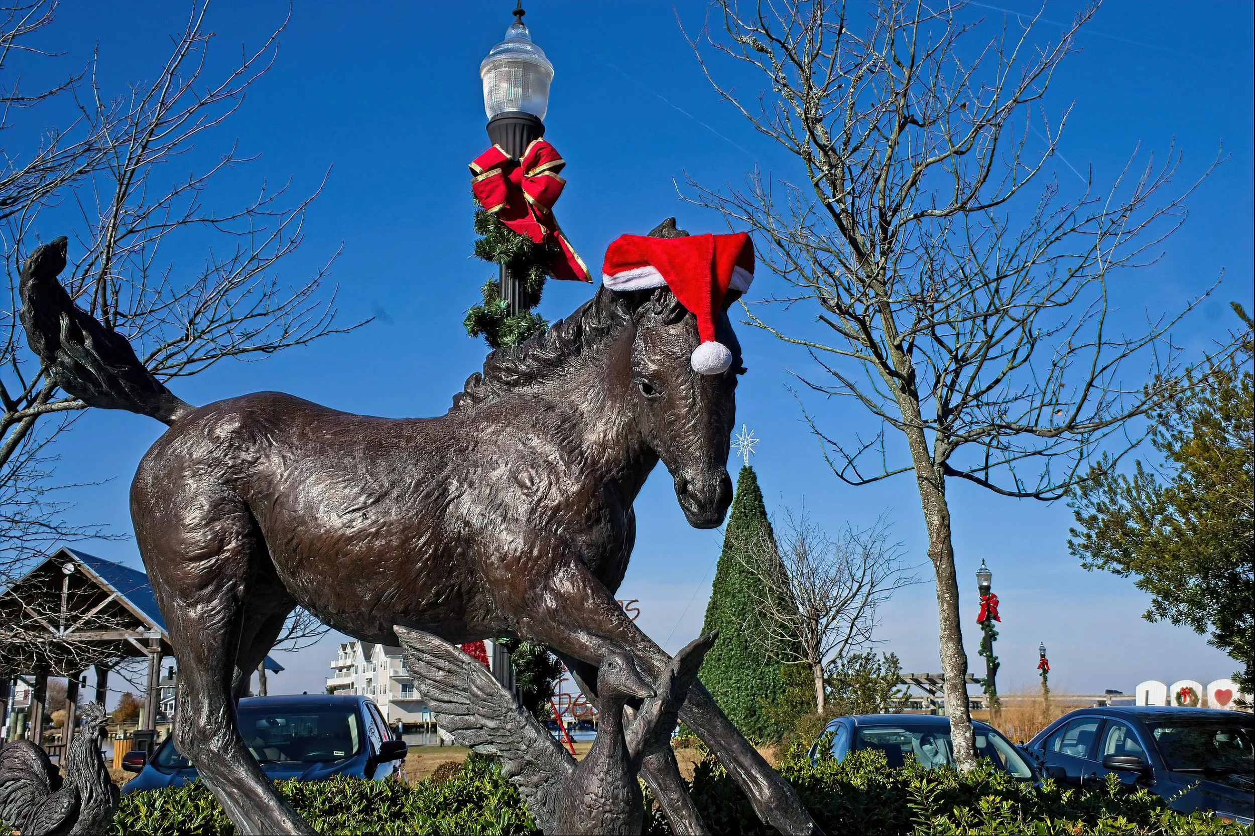 I was able, along with two friends, to spend three days on Chincoteague Island last week. Lots of fun photographing wild ponies, Snow Geese, herons, a few people and some interesting shore buildings as well as a short jaunt in the sleet and snow to Ocean City, Maryland. Not a lot of people on the beach there. In the small town of Chincoteague they have an equally small park that is all higgledy-piggledy with lots of people’s ideas of what ought to be there. The one that I expect had no opposing voices - the statue of Misty, the pony whose story made the island world famous. It was appropriate to deck her out for Christmas. I included two of the many ponies I photographed as well.