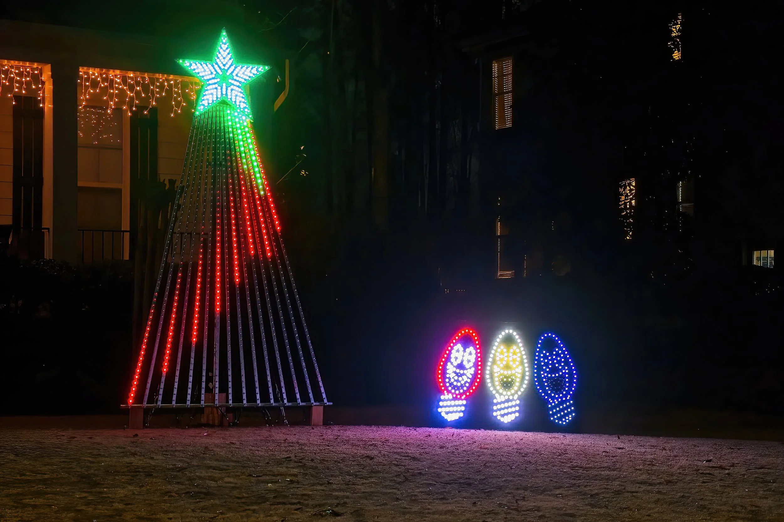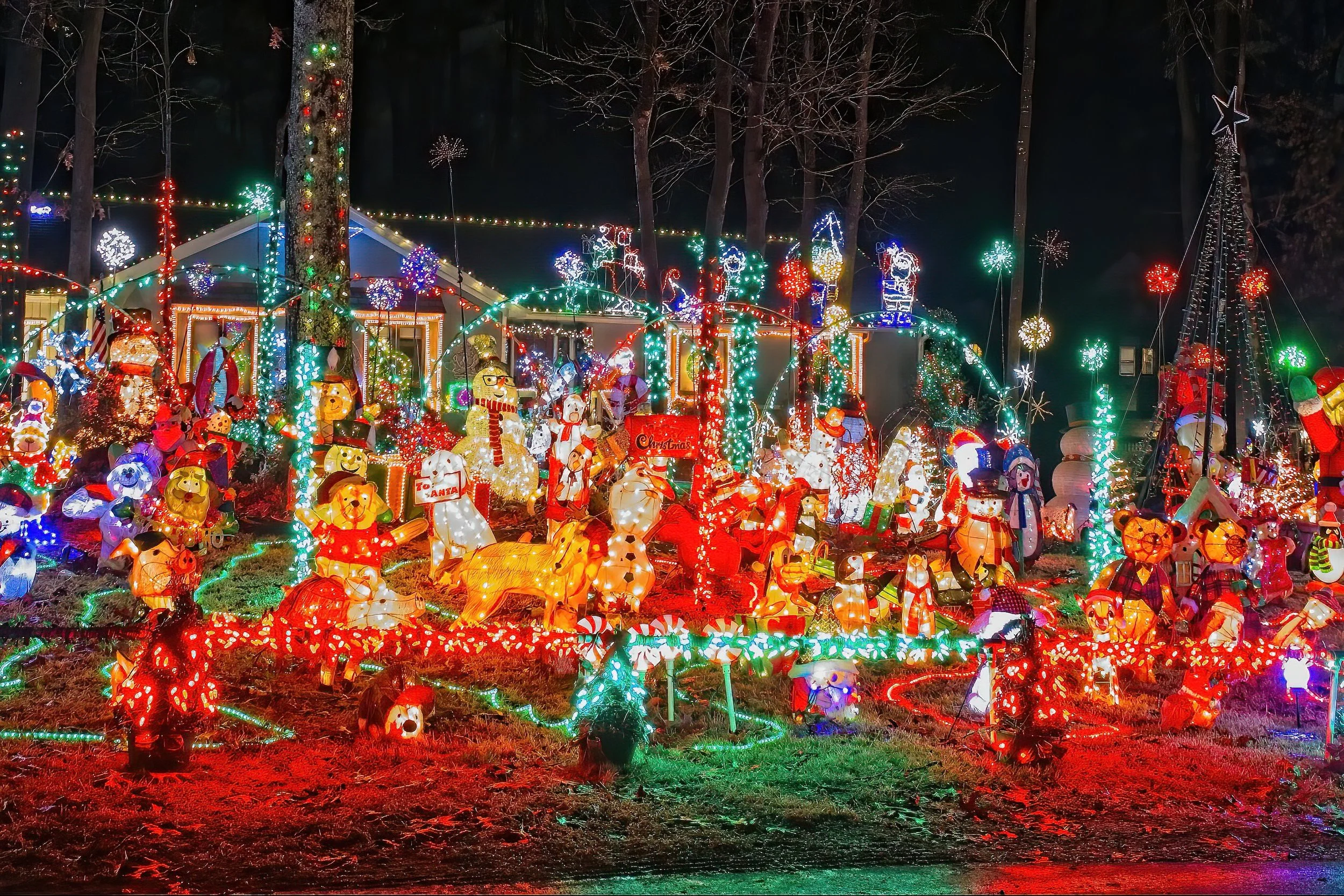 One of the activities we like to do, Cindy more than me, is to go and look at Christmas lights people have put around their homes. Some are extravagant, some modest, a few just have a wreath and some nothing. There are also those who go all out for the season. You can find maps or take limo tours of those houses. We have done the “Tacky Light Tour” in Richmond a few times and here in Raleigh the local TV station sets out a list of places to view. The other day we chose two near us. The first was a tasteful assembly with a nice flashing light display set to music that you could listen to over an FM station in your car. The other wasn’t any of those things.