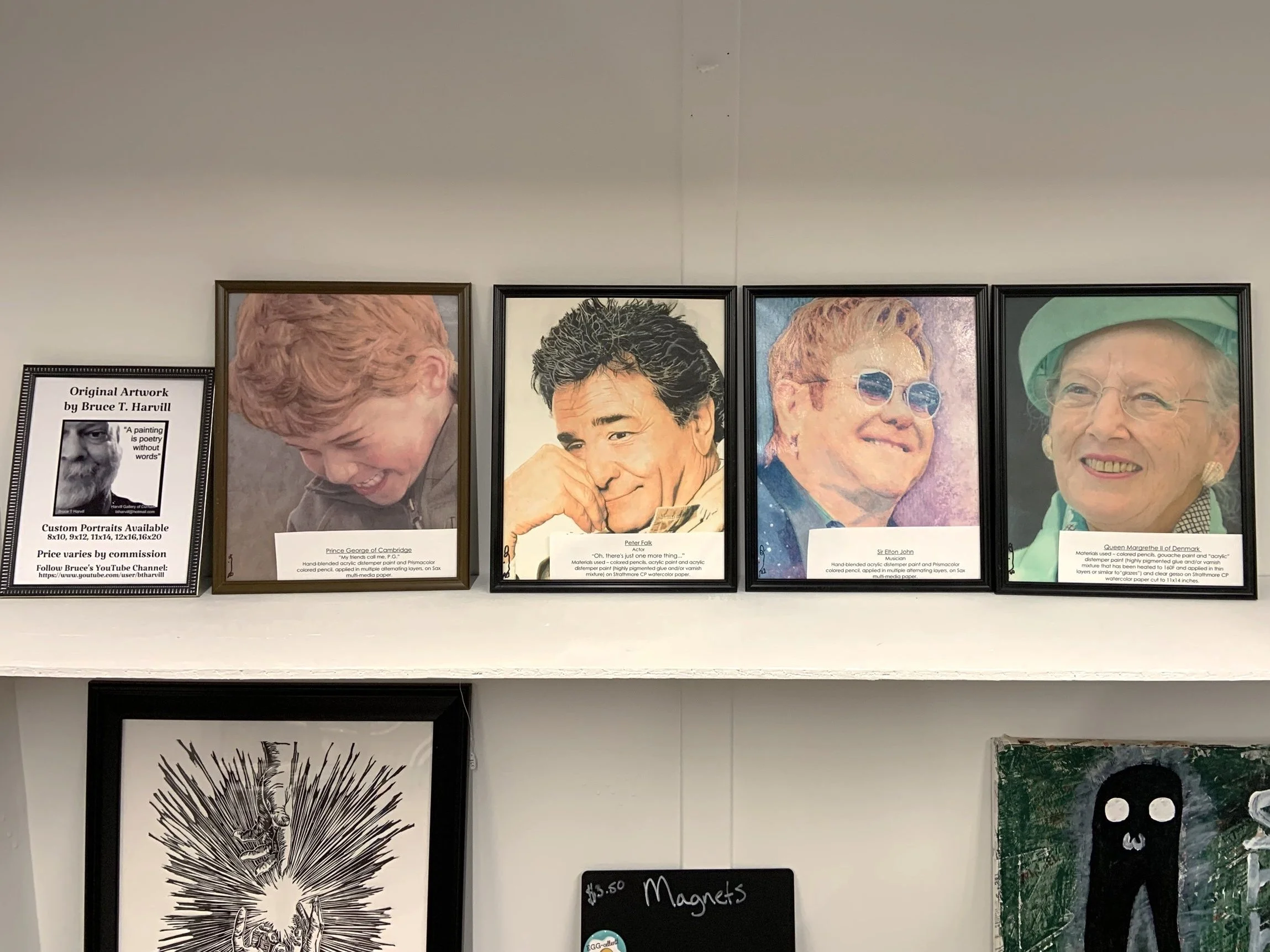 But Bruce emerged from the back and when we said we wanted a cup of coffee he pointed to a menu. Four pages! Not just fancy names or drinks that had a passing resemblance to coffee, you could get Thai coffee, Vietnamese coffee, Japanese coffee, Cuban coffee, cowboy coffee, all the forms of espresso drinks you could imagine plus a few you could not think of and they were all different. Bruce made me a pour over coffee, adjusted to a medium strong brew with a bit of sugar. PERFECT. Cindy ordered a cowboy coffee and it was delicious. I asked about the kinds and he said as he traveled all over the world he sought out the best coffee shops and learned how to make coffee dozens of ways. When I asked what took him around the world, he said he was the sound technician for Stryper (sp), U2 and Rush on what seemed like endless tours. We chatted for an hour and he regaled us with several stories. What a morning. We also noted some brilliant small portraits and it turns out while his wife fills the store with creative jewelry he paints in a 15th century fashion gorgeous portraits - some of them can be found in palaces. Simply stunning.