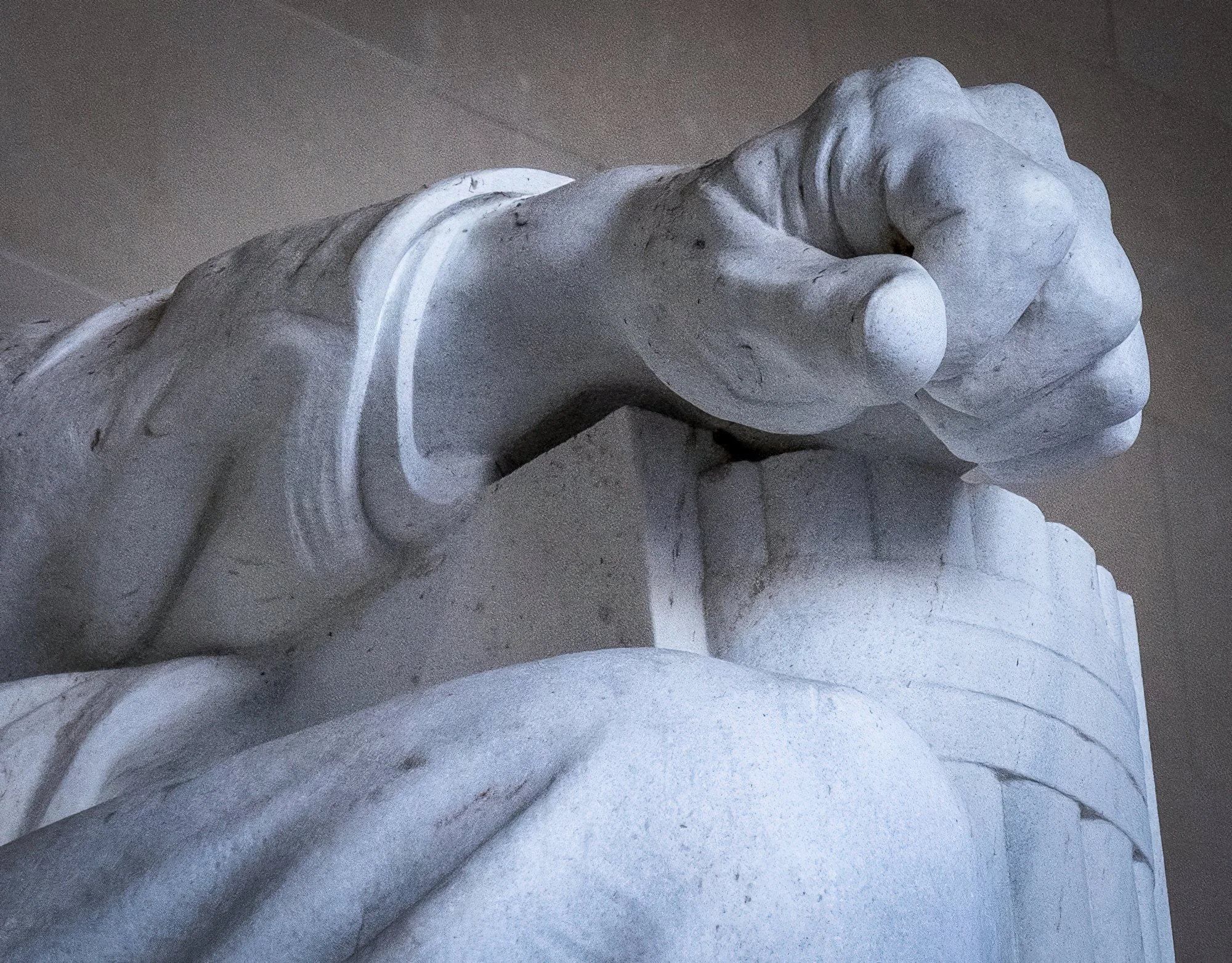Detail of Lincoln’s hand at the Memorial in Washington, DC.