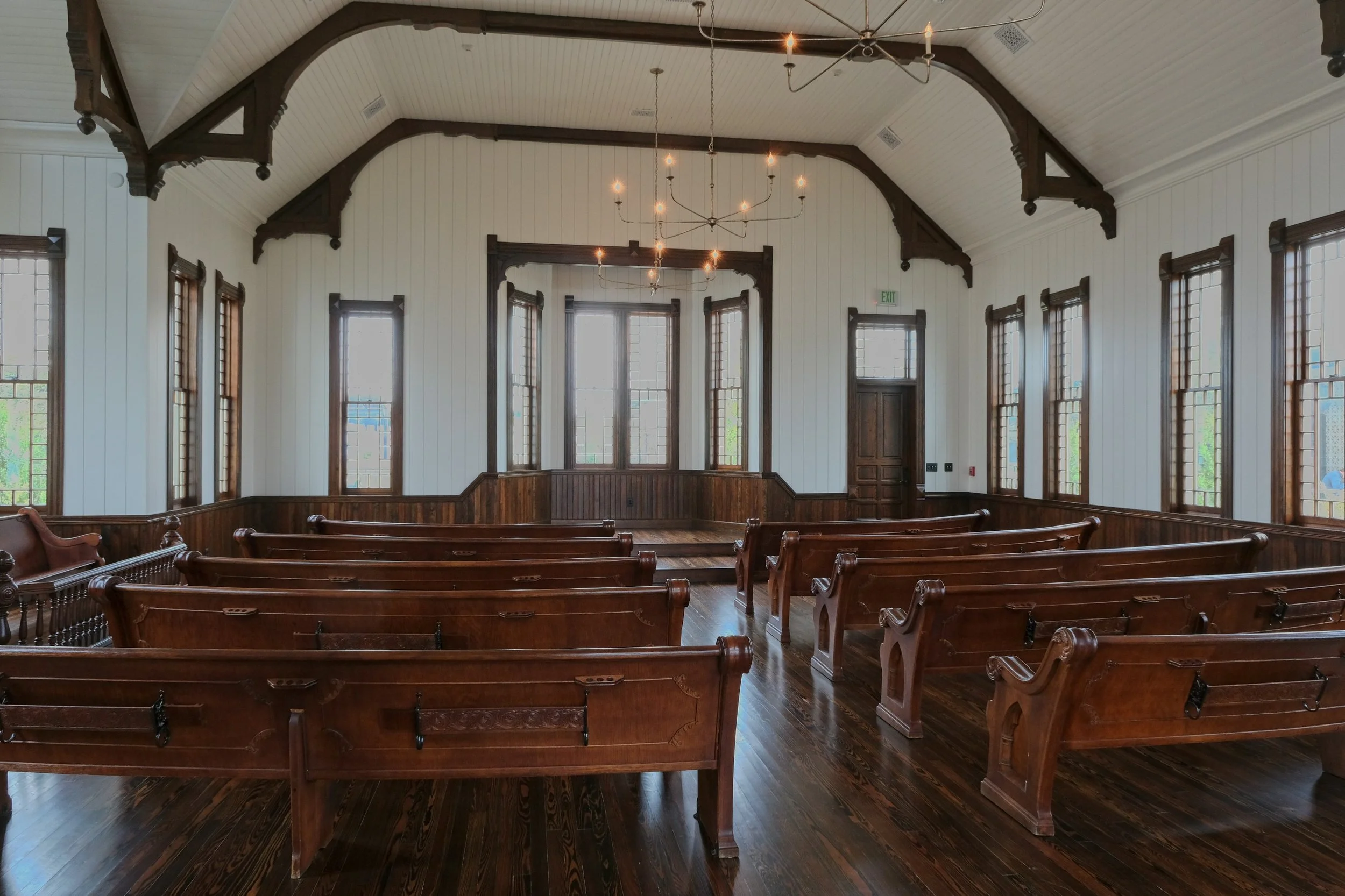 This is a church built in the 1800’s in Waco, Texas. It was moved to the Magnolia complex next to the Wiffle ball field and restored by Chip and Joanna Gaines. They have not used it yet but it will be for several community functions. It was a very nice building.