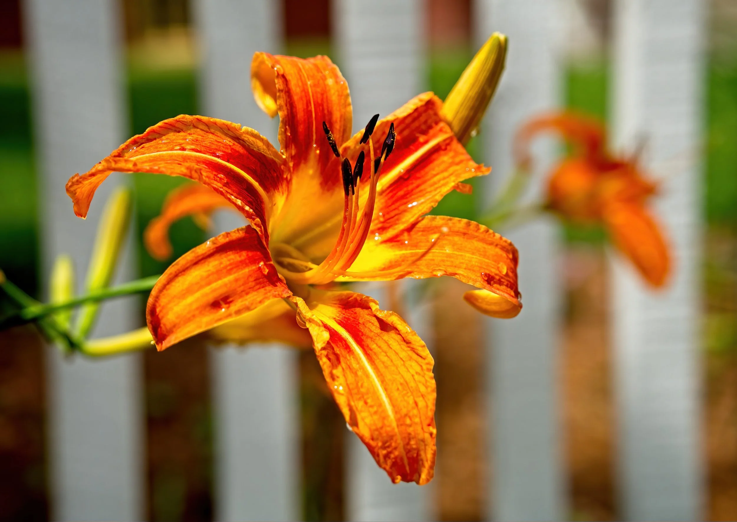 I think this is some sort of day lilly but I know they grow all over Virginia along the roads. I always enjoyed seeing them. THis one was against a Williamsburg picket fence.