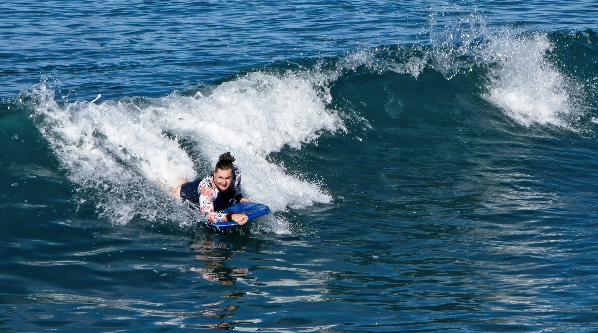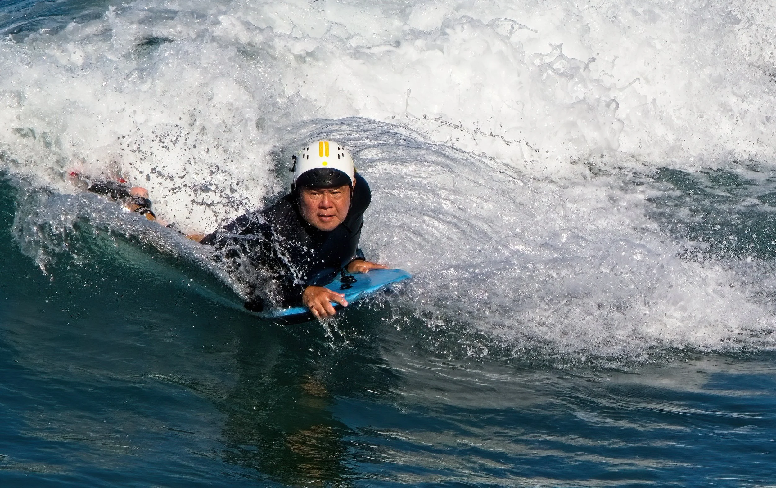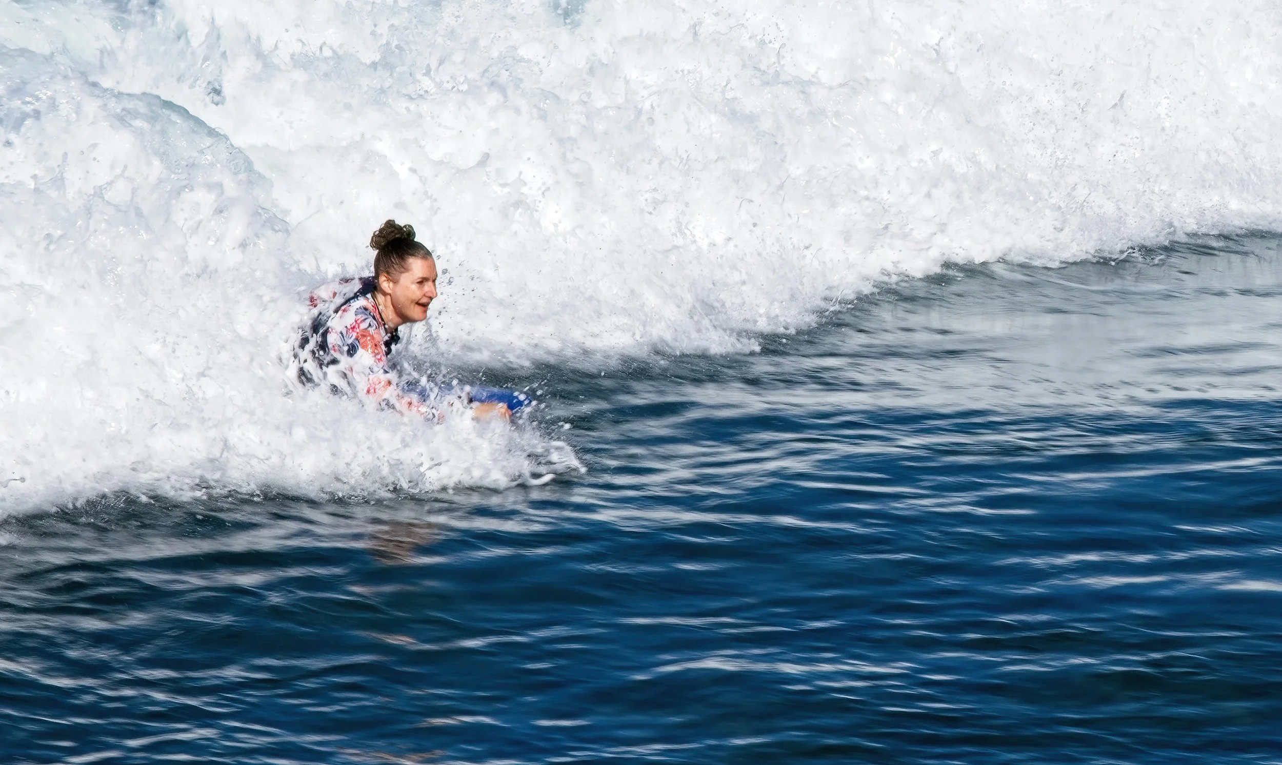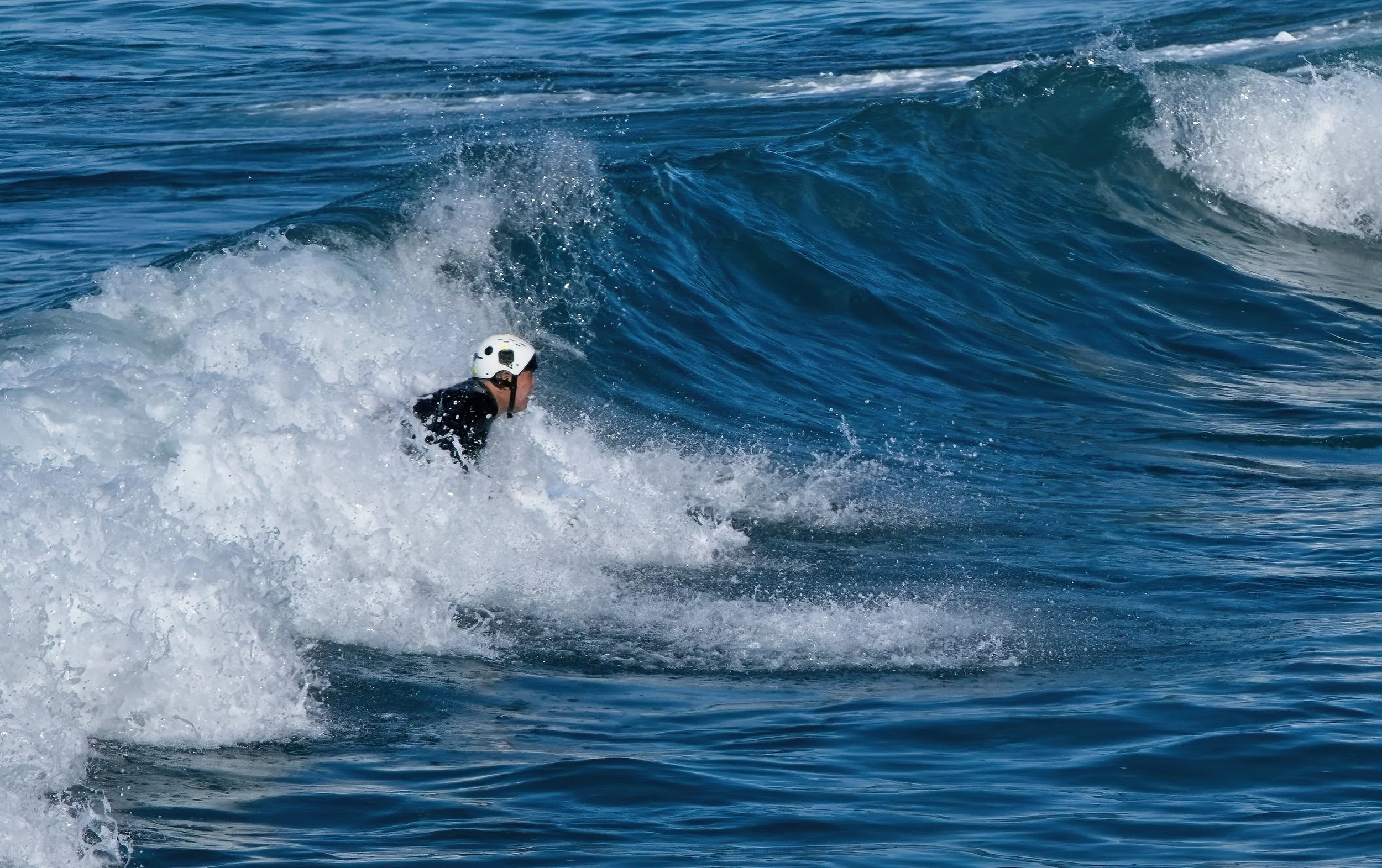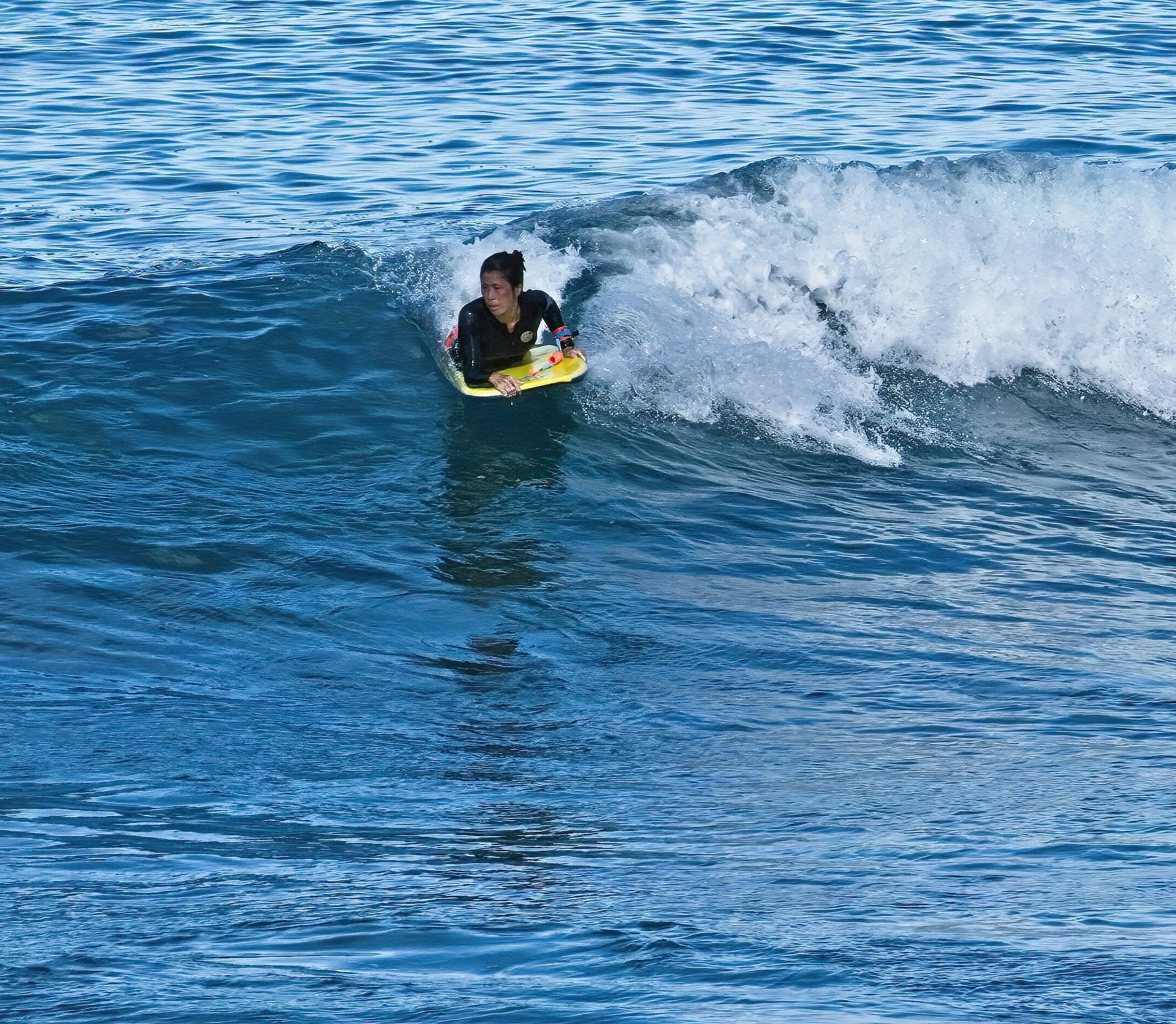 “I have watched you from the shore” Actually a jetty. Cindy and I met her later as we both were crossing the street. I told her I took a couple of photos of her - and lots of other surfers too, and she said she always wanted a photo of her surfing, so I sent her these two.