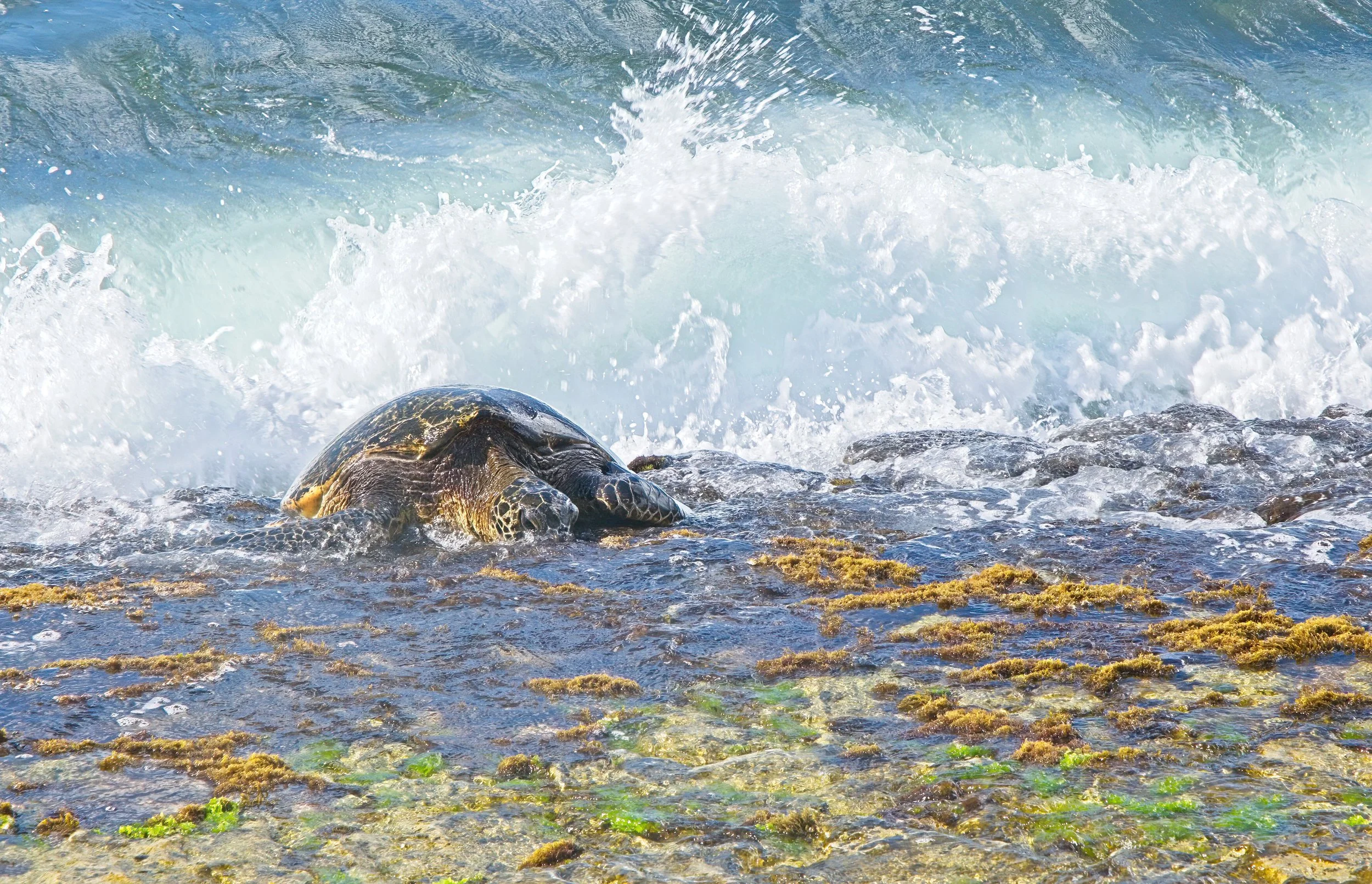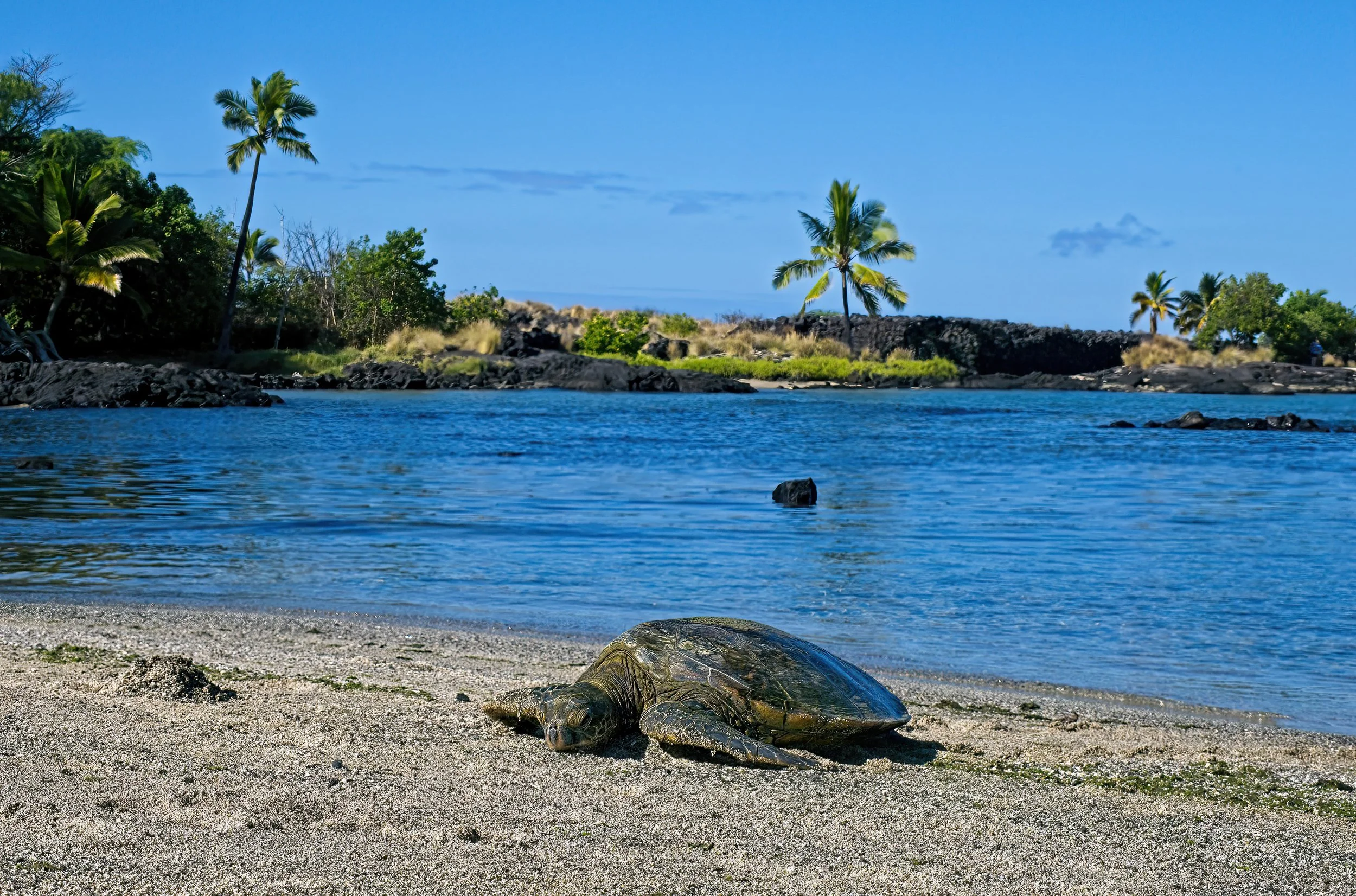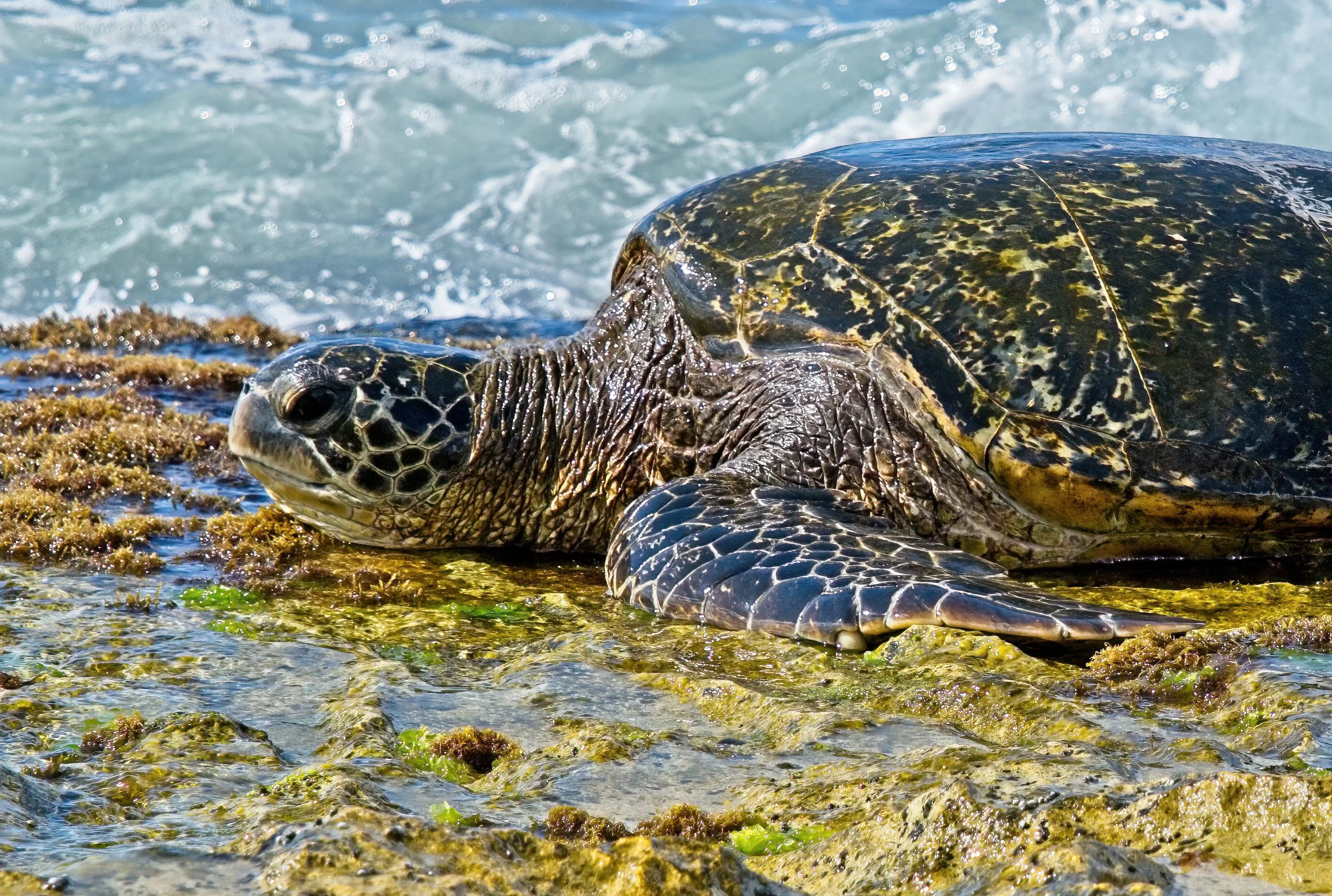 I almost walked into this fellow which would have been a serious faux pas because you are not supposed to get closer than about 20 feet from a sea turtle. I just arrived at the beach, it was so pretty and there were small fish jumping and a Black-crowned Night Heron fishing on a rock 10 feet from shore. So I was taking photos and moving left to get a better frame when about 4 feet from said turtle I stopped and looked to my immediate left and there he was. So I backed off a few feet and shot several photos of him and the beach. There were also 4 in the water. Going back early Friday morning before our flight to Maui.