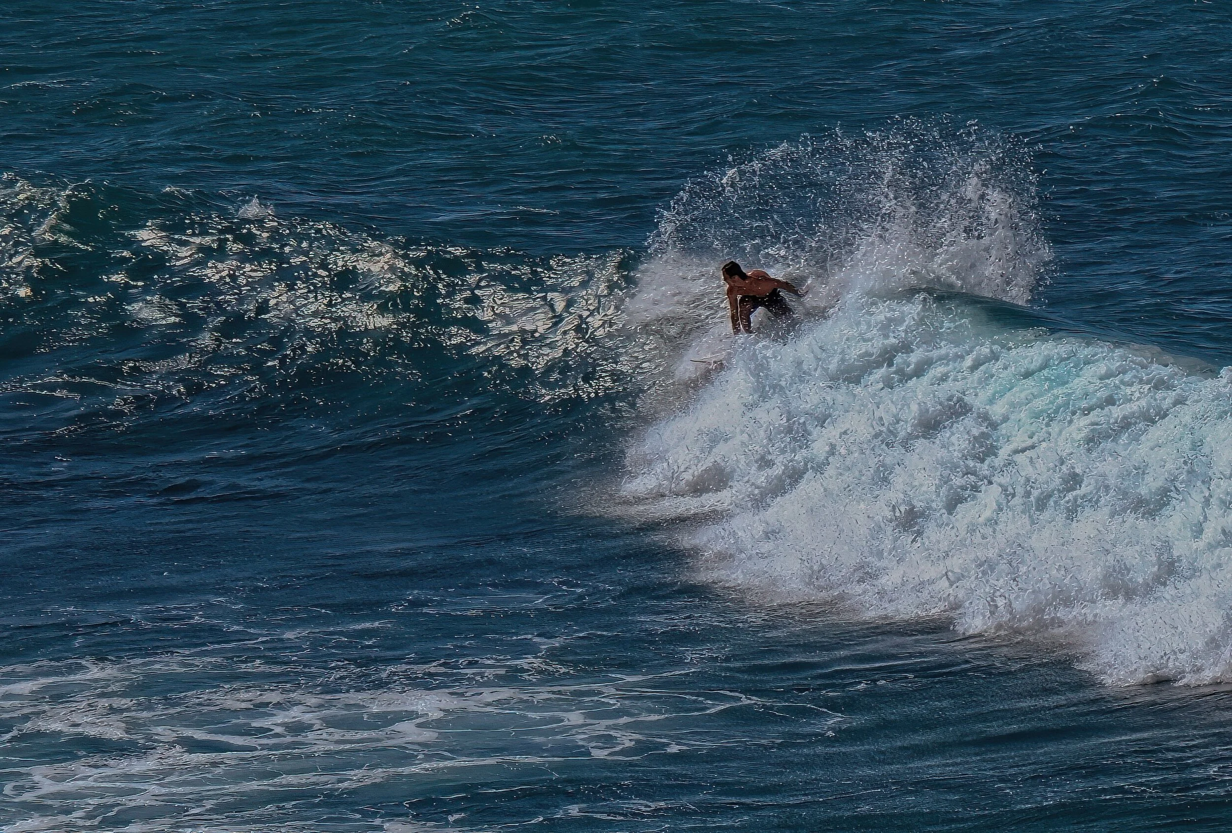 We enjoyed watching the surfers off of North Beach in Maui. The best waves are here and most of the serious surfers seem to be as well. The photos were tough. I was on a high cliff a long way from the action and from where they would catch a wave and then a bit more toward shore the light changed dramatically. And I did not have my trusty 100-400 lens. So with all that complaining out of the way, two of the many surfers from our last day in Hawaii.