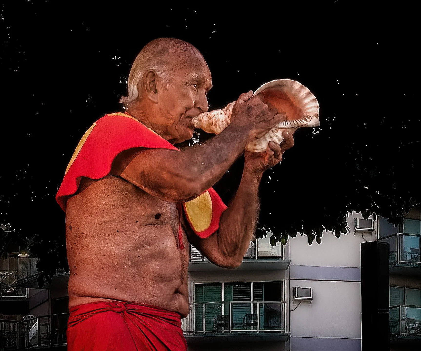 The conch shell in Hawaii is used by skilled practitioners for a variety of purposes, some are not shared with those outside of the natives to that culture. However, most events and ceremonies officially start with the blowing of the shell. We watched a trio and two dancers from the University of Hawaii one night in Waikiki. The presentation began with this man, who has been doing this for years, creating a loud, pure note that he did more than one time and in more than one direction. All of those details matter but it was done with little explanation. What was clear was how skilled this man was and how respected for his gift.