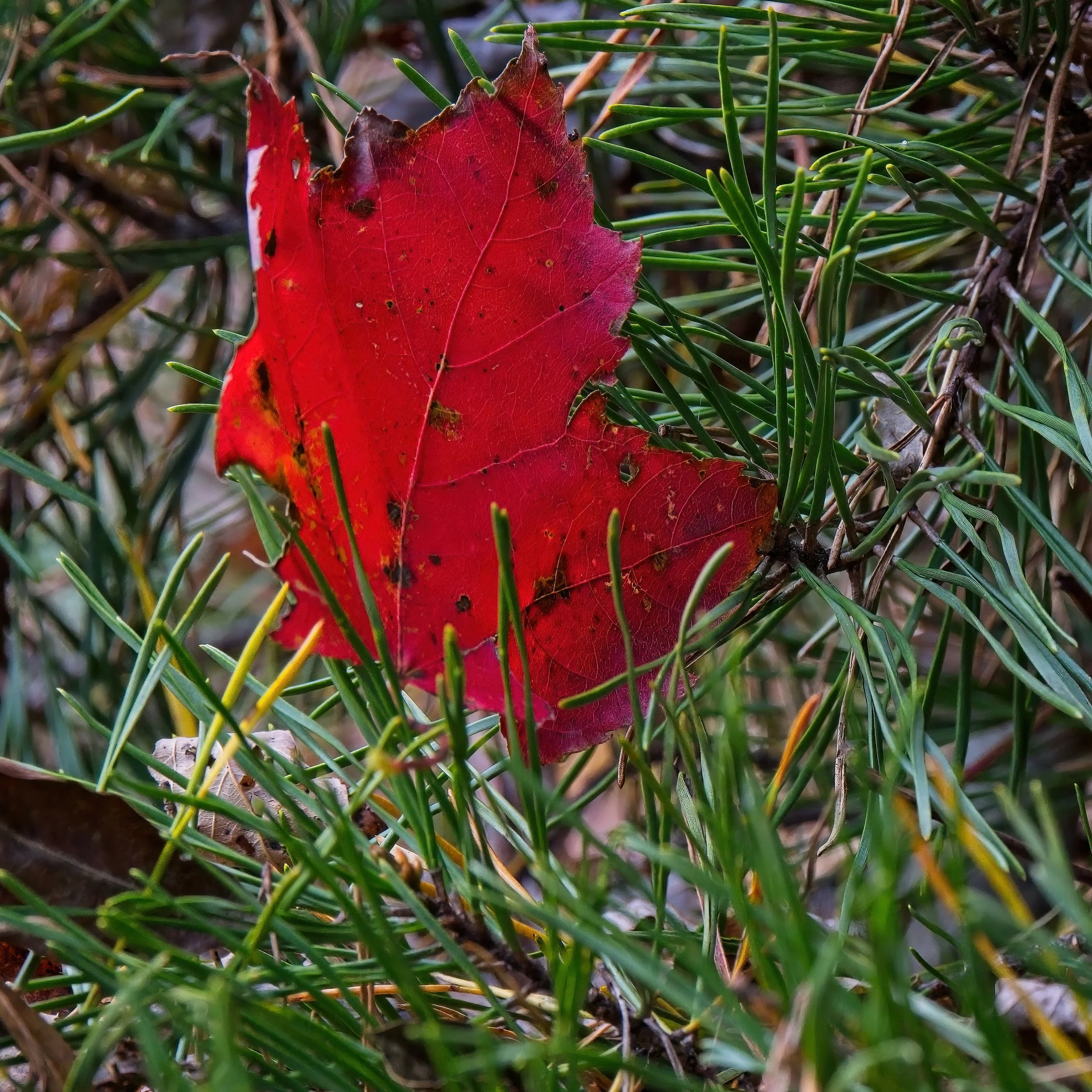 This red maple leaf was snagged in the pine tree on a remote road on the Blue Ridge Parkway. Because we saw so few colorful leaves it made the cut. Also, I am busy and behind on so much, and have to be four hours away this morning for a service. Back tonight. I intend to be caught up by the end of the week. Good intentions.