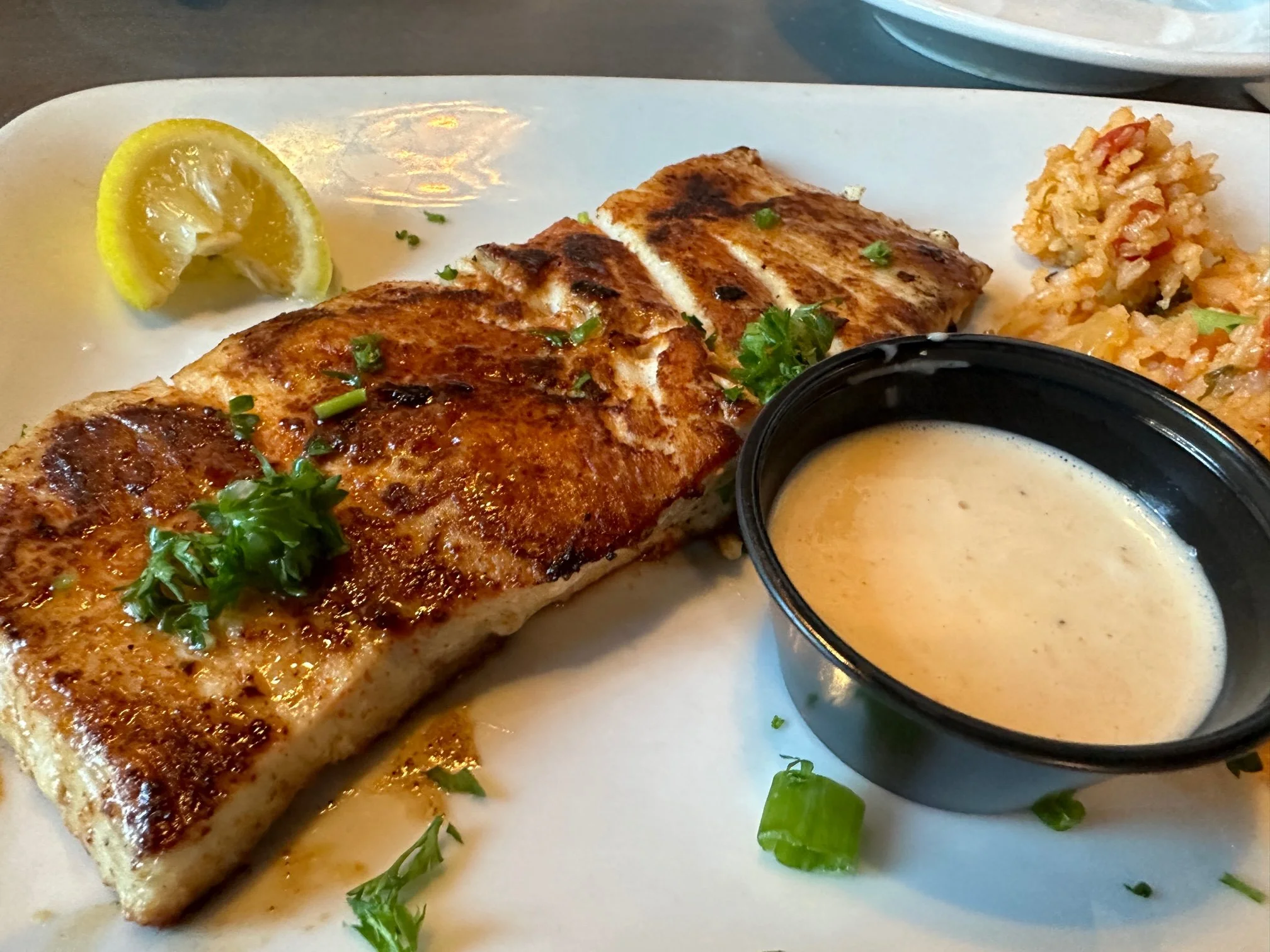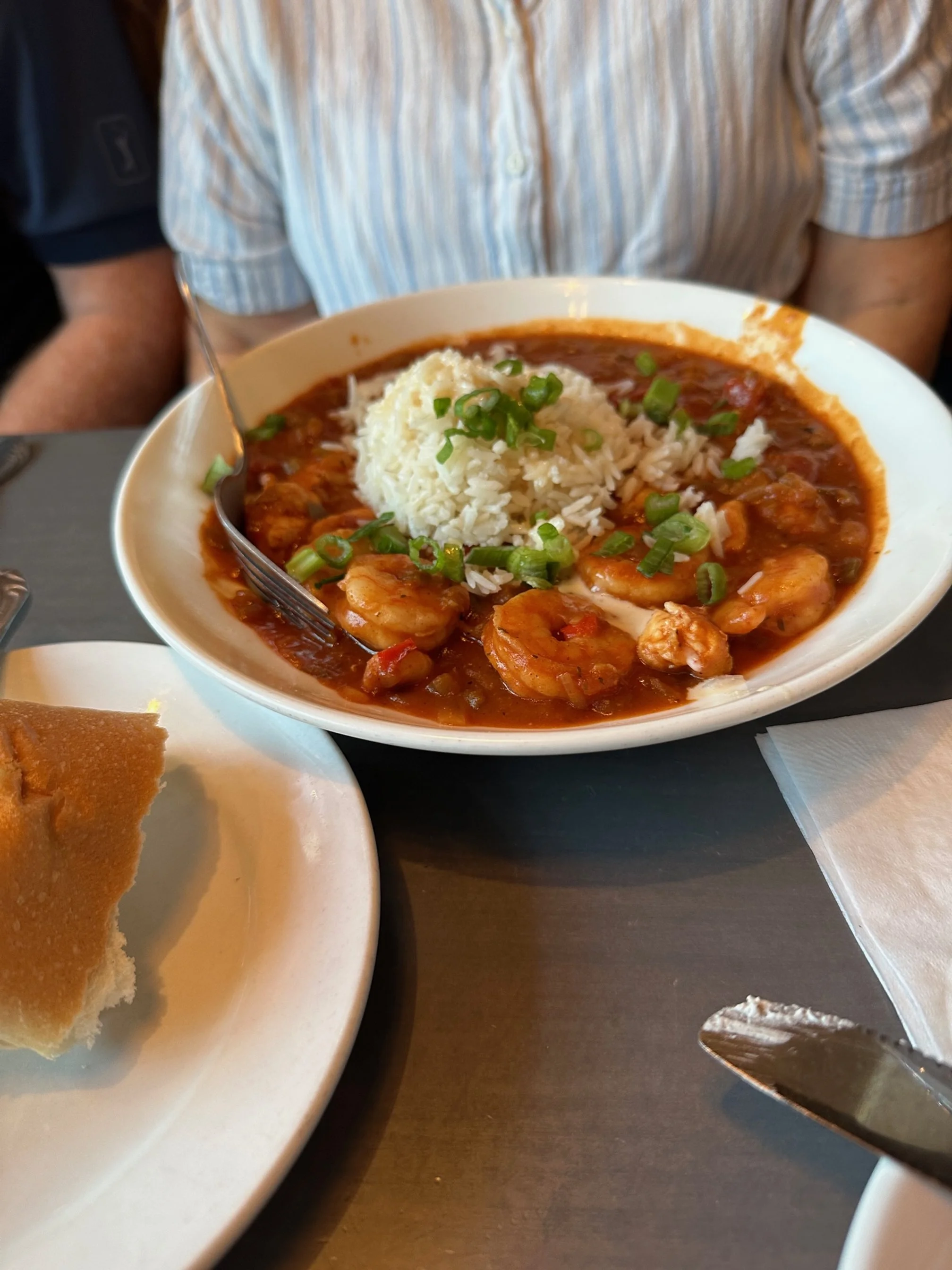 We arrived for lunch and were able to be seated quickly and that is not always the case at this very busy place. Service was excellent and the menu while not extensive offered a nice selection of dishes. In our party of four we had blackened Mahi-Mahi, Shrimp and Scallop Orleans, Gumbo, and Grouper. The Mahi was perfectly seasoned, the Shrimp dish included a unique corn cake with a tasso ham gravy, the Gumbo was apparently swoon worthy and the grouper, well it disappeared from the plate too quickly for me to snag a taste. We will assume was excellent too.
