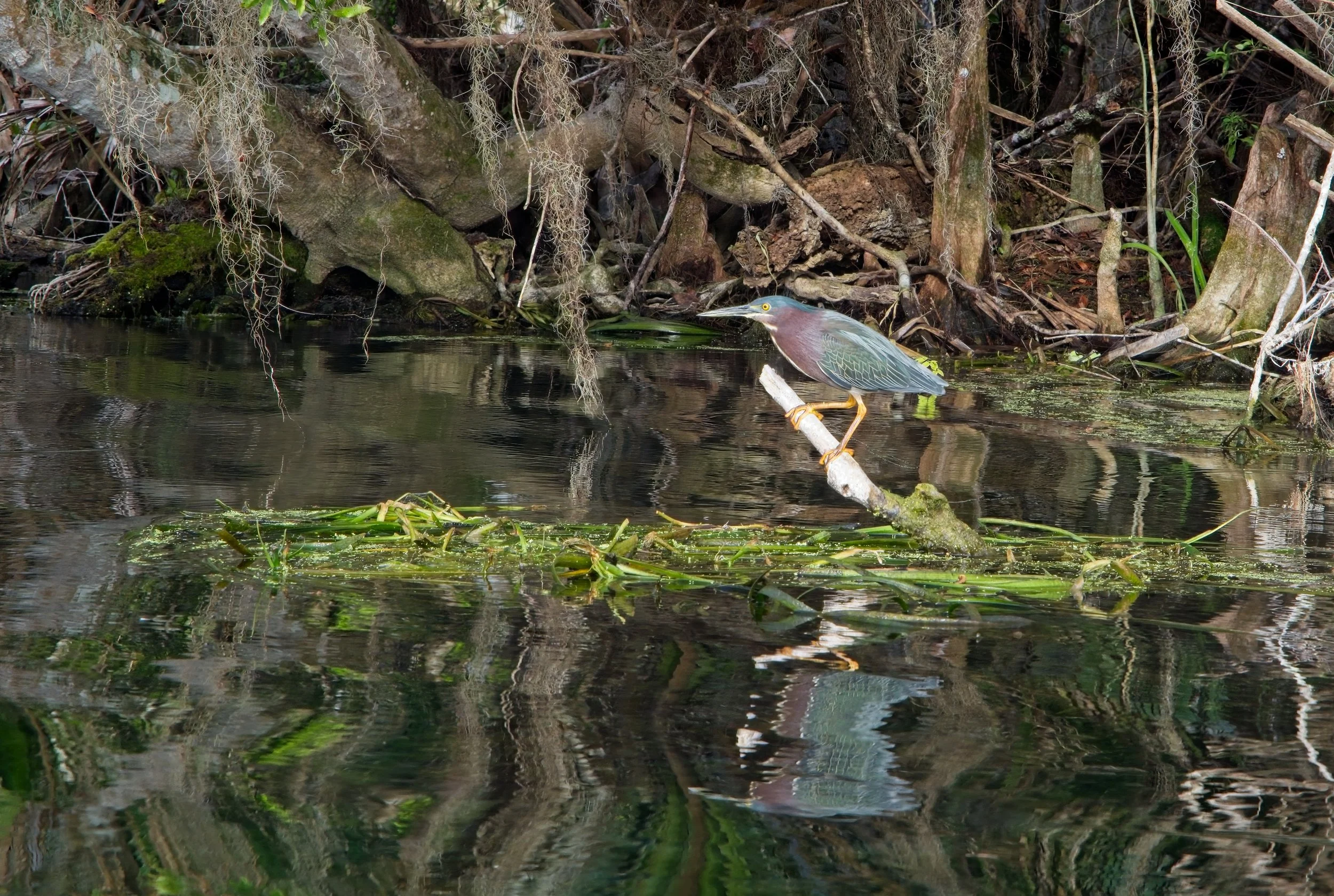 On a kayak you can get up close to birds that scatter when you approach from land. This Little Green Heron was perched for a fishing opportunity yet we were less than ten feet before he twitched at which point I backed off about three and he relaxed again. So cool. The Silver Springs State Park is a stunning place.