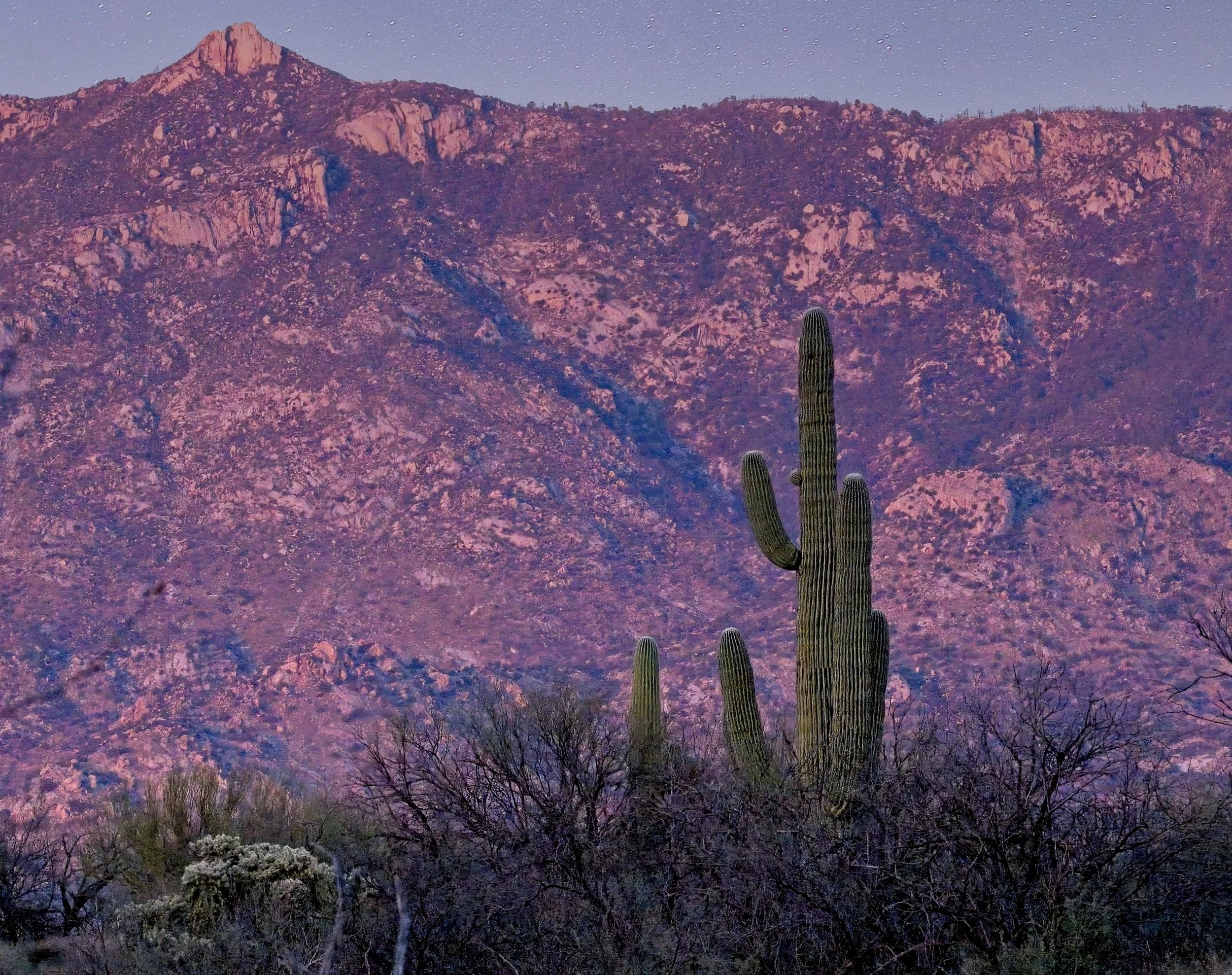 We parked the RV on the late side at a state park just north of Tucson as the sunlight was fading fast. While I was leveling the trailer I looked up and there was the moon just coming over the mountain across from us. Beautiful.