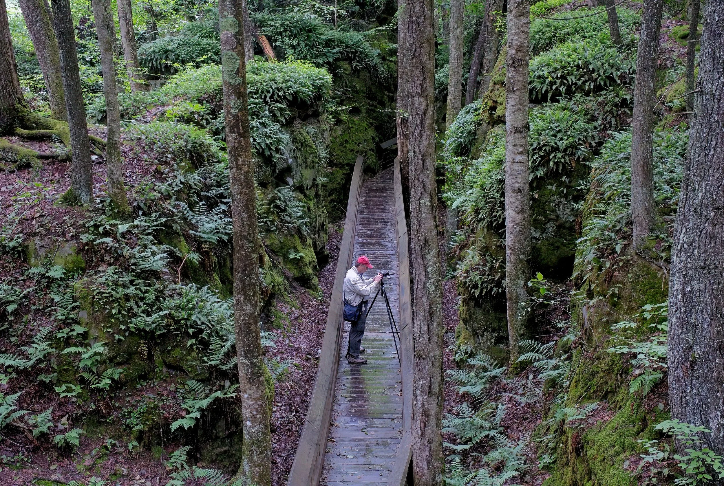 This photo shows the most common wildlife encountered in the Beartown State Park. They come in various iterations from the annoying Selfious Photogium to the silly Snapious Photogium (the subspecies Snapious Photon Photogium is nearly extinct forced out by the ubiquious Snapivarious Phonious Photogium) and finally the most intrusive of all the Tripodium Photogium captured here in a singular, nearly rational moment. Most often this species is frantically dashing to and fro peering into small black accouterments and bemoaning the “light.”